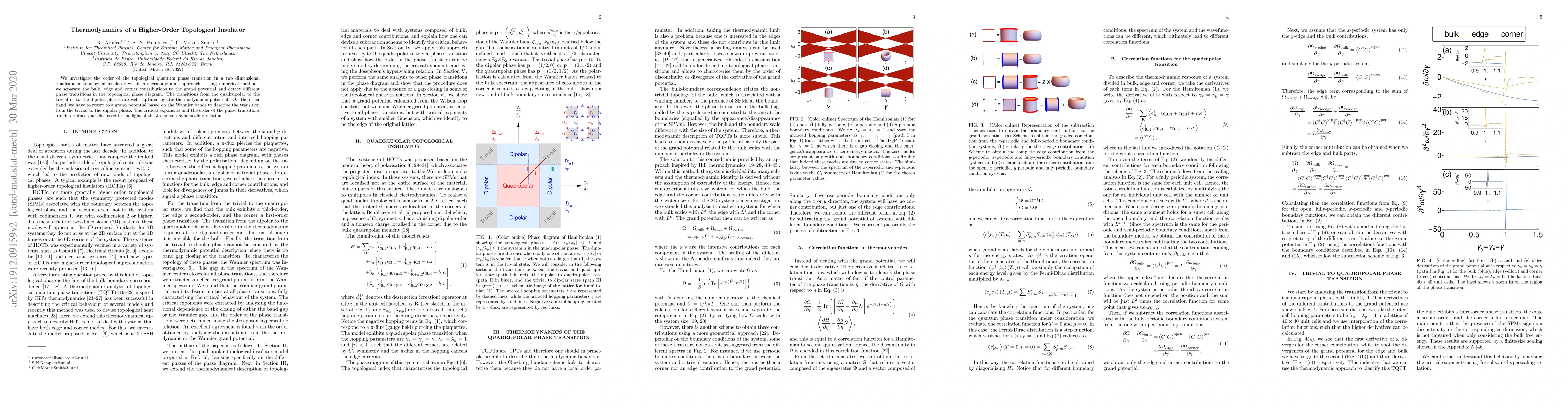 Researchers investigate thermodynamics of a higher-order topological insulator, finding different phase transitions in its topological phase diagram and determining critical exponents.