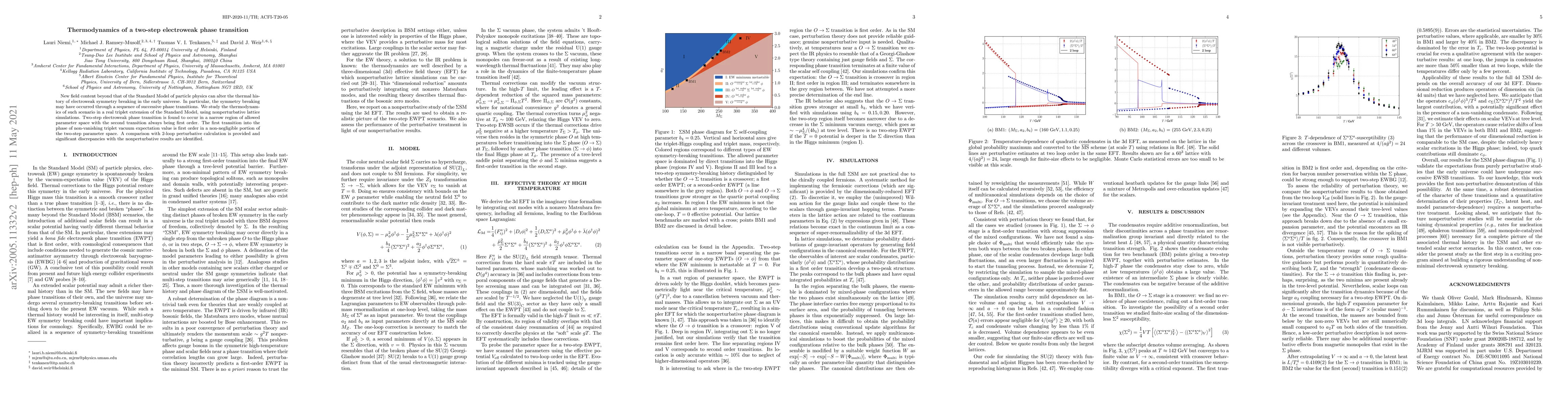 This paper investigates the thermodynamics of a two-step electroweak phase transition in a real triplet extension of the Standard Model, employing nonperturbative lattice simulations. It finds that such a transition occurs in a narrow region of parameter space, with both transitions being first order, and highlights significant discrepancies between nonperturbative and perturbative calculations.