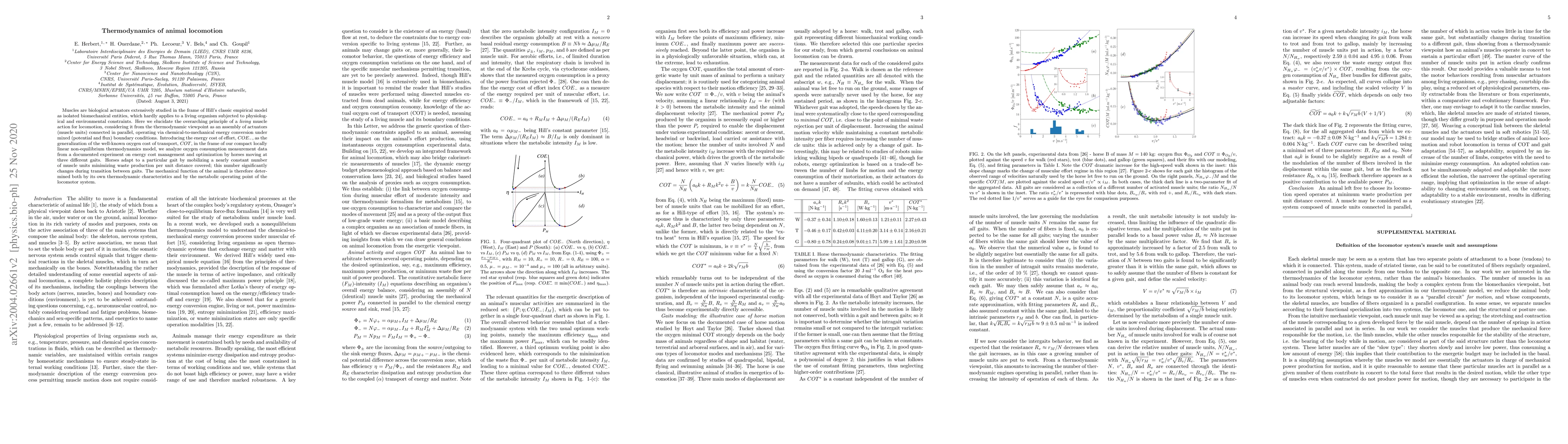 Muscles are biological actuators extensively studied in the frame of Hill's classic empirical model as isolated biomechanical entities, which hardly applies to a living organism subjected to physiological and environmental constraints. Here we elucidate the overarching principle of a \emph{living} muscle action for locomotion, considering it from the thermodynamic viewpoint as an assembly of actuators (muscle units) connected in parallel, operating via chemical-to-mechanical energy conversion under mixed (potential and flux) boundary conditions. Introducing the energy cost of effort, $COE_-$, as the generalization of the well-known oxygen cost of transport, $COT$, in the frame of our compact locally linear non-equilibrium thermodynamics model, we analyze oxygen consumption measurement data from a documented experiment on energy cost management and optimization by horses moving at three different gaits. Horses adapt to a particular gait by mobilizing a nearly constant number of muscle units minimizing waste production per unit distance covered; this number significantly changes during transition between gaits. The mechanical function of the animal is therefore determined both by its own thermodynamic characteristics and by the metabolic operating point of the locomotor system.