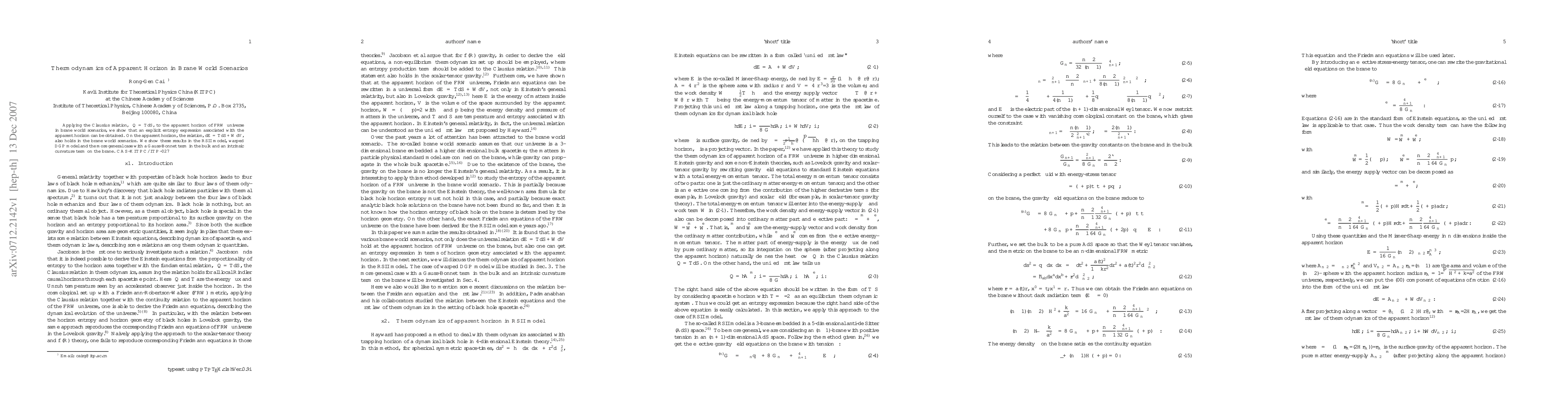 This paper applies the Clausius relation to the apparent horizon in brane world scenarios to derive an explicit entropy expression. It demonstrates that the first law of thermodynamics holds on the apparent horizon in models like RSII, warped DGP, and those with a Gauss-Bonnet term in the bulk.