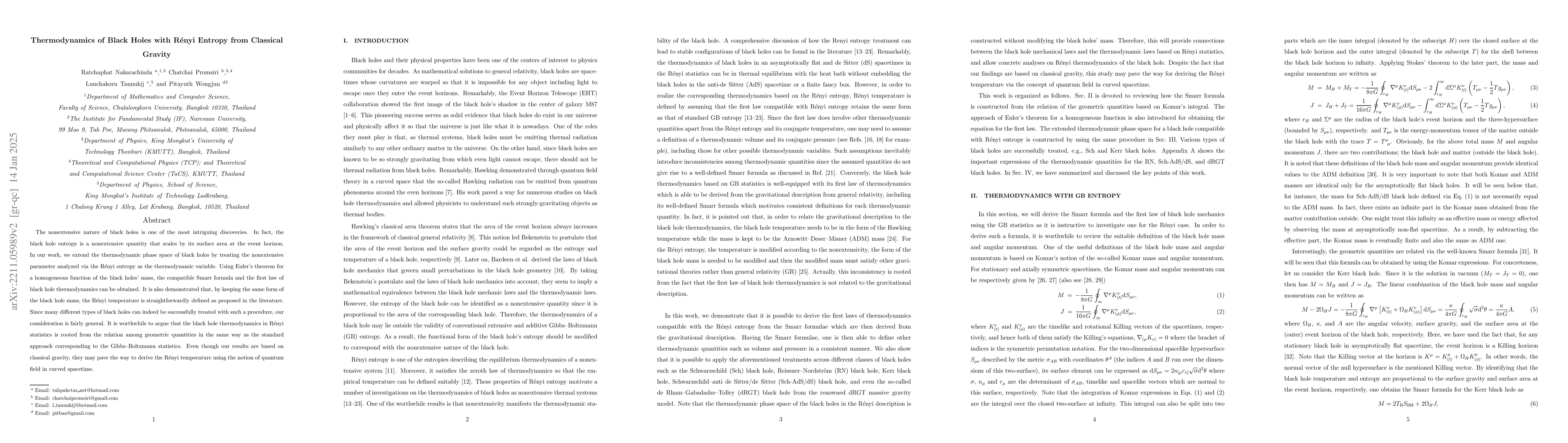 This paper explores the thermodynamics of black holes using R\'enyi entropy, extending the thermodynamic phase space by treating the nonextensive parameter as a thermodynamic variable. It derives a compatible Smarr formula and first law of black hole thermodynamics, demonstrating a general approach applicable to various black hole types.