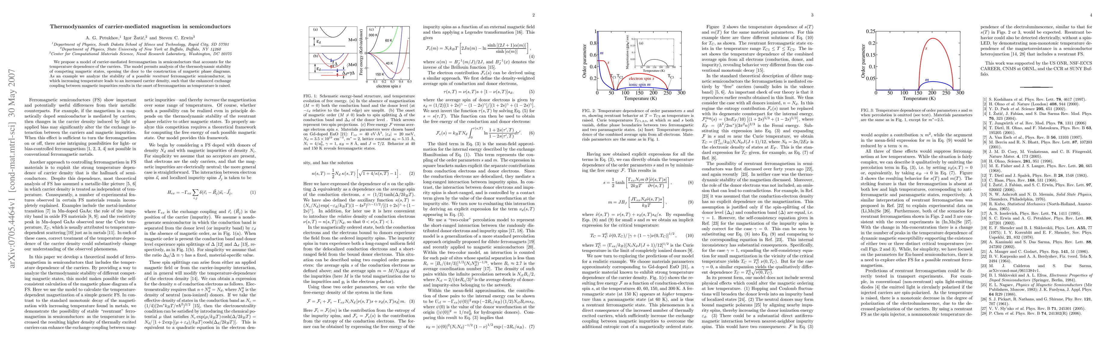 We propose a model of carrier-mediated ferromagnetism in semiconductors that accounts for the temperature dependence of the carriers. The model permits analysis of the thermodynamic stability of competing magnetic states, opening the door to the construction of magnetic phase diagrams. As an example we analyze the stability of a possible reentrant ferromagnetic semiconductor, in which increasing temperature leads to an increased carrier density, such that the enhanced exchange coupling between magnetic impurities results in the onset of ferromagnetism as temperature is raised.