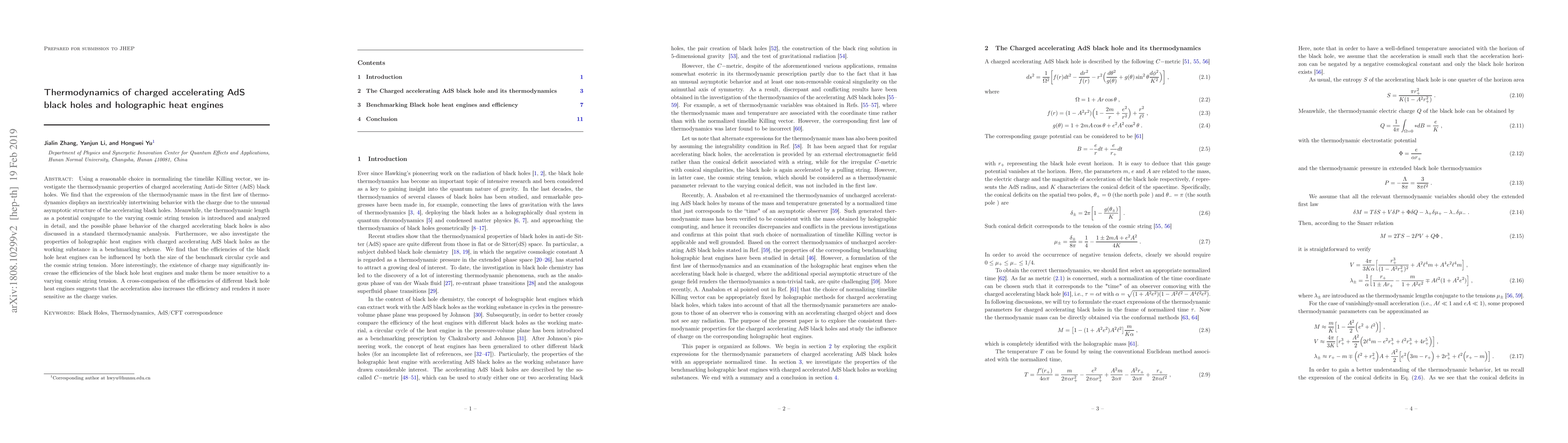 This paper explores the thermodynamics of charged accelerating Anti-de Sitter (AdS) black holes, revealing a complex interplay between thermodynamic mass, charge, and cosmic string tension. It also examines holographic heat engines using these black holes, showing that charge can enhance efficiency and sensitivity to cosmic string tension variations.