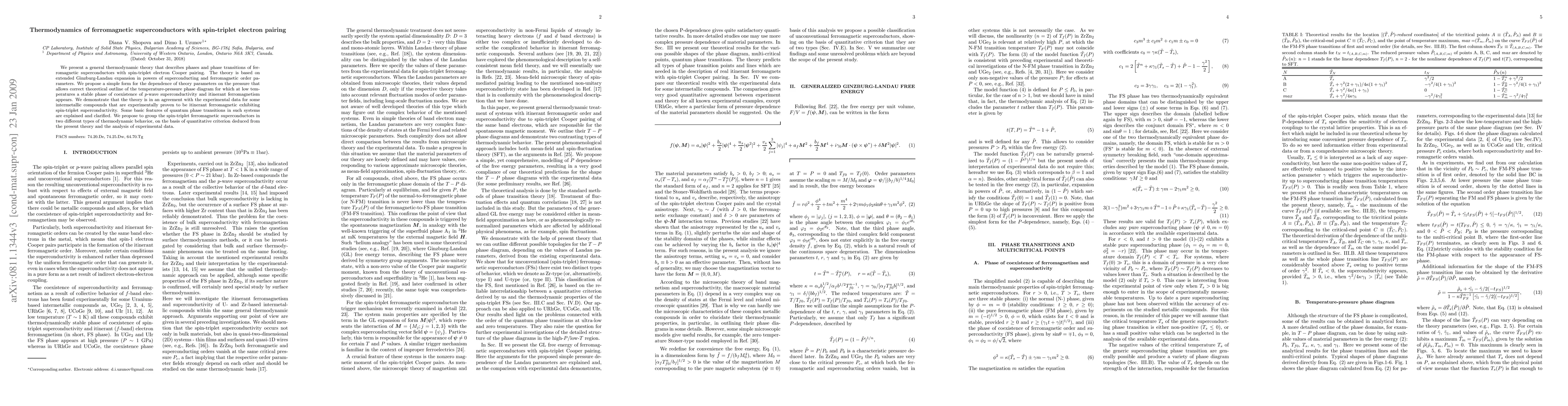 This research develops a thermodynamic theory for ferromagnetic superconductors with spin-triplet pairing, based on an extended Ginzburg-Landau expansion, and proposes a pressure dependence model for theory parameters. The study also classifies these materials into two types based on thermodynamic behavior and validates the theory with experimental data from intermetallic compounds.