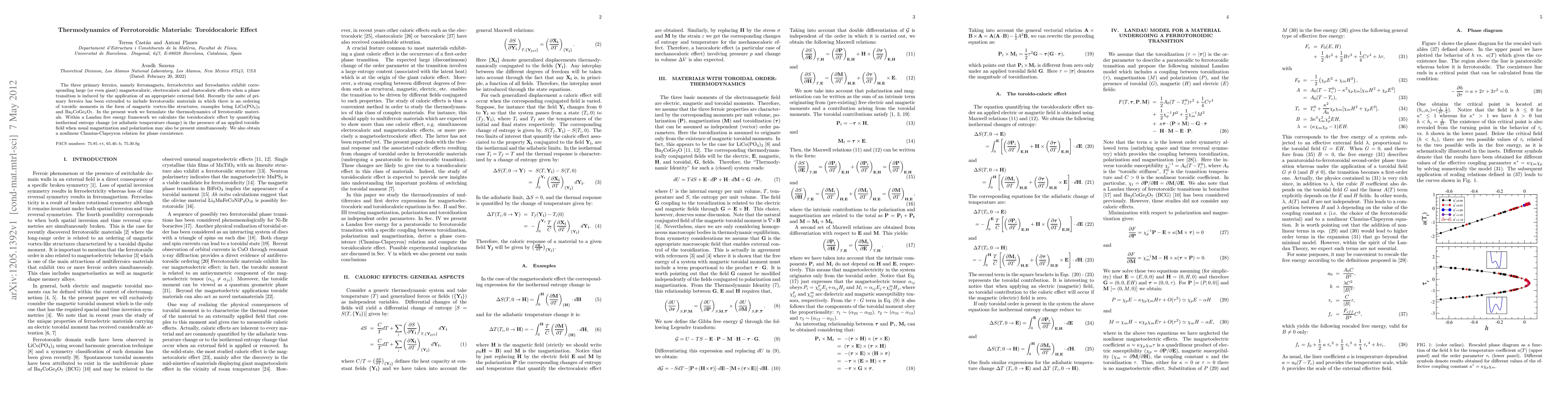 This paper formulates thermodynamics of ferrotoroidic materials, calculating toroidocaloric effect with a Landau free energy framework and obtaining nonlinear Clausius-Clapeyron relations for phase coexistence.