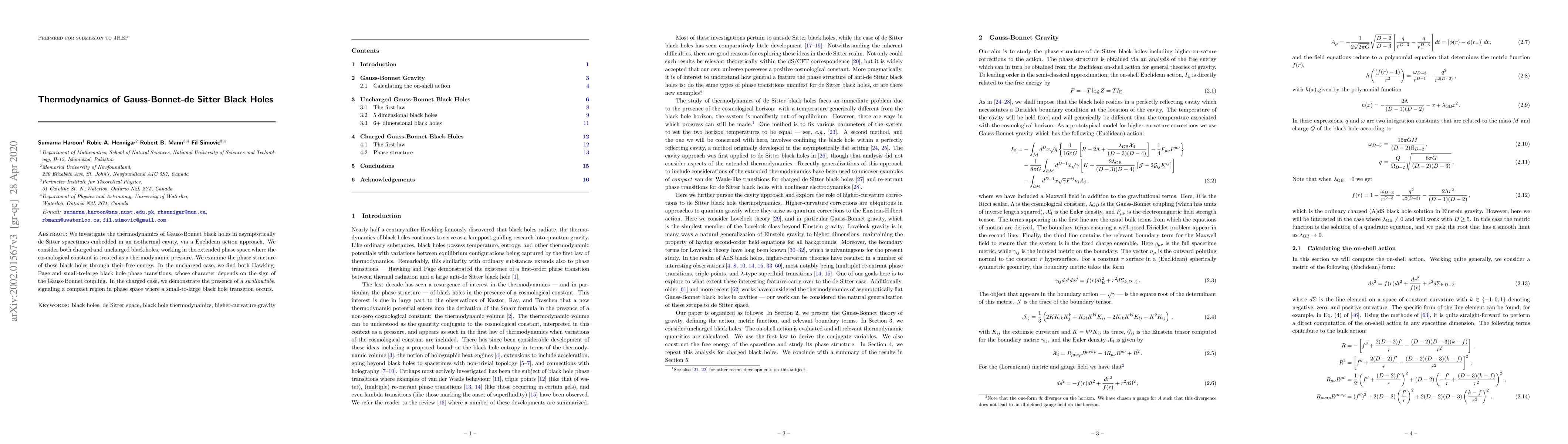 The research investigates the thermodynamics of Gauss-Bonnet black holes in asymptotically de Sitter spacetimes using an Euclidean action approach, considering both charged and uncharged black holes in the extended phase space where the cosmological constant is treated as a thermodynamic pressure.