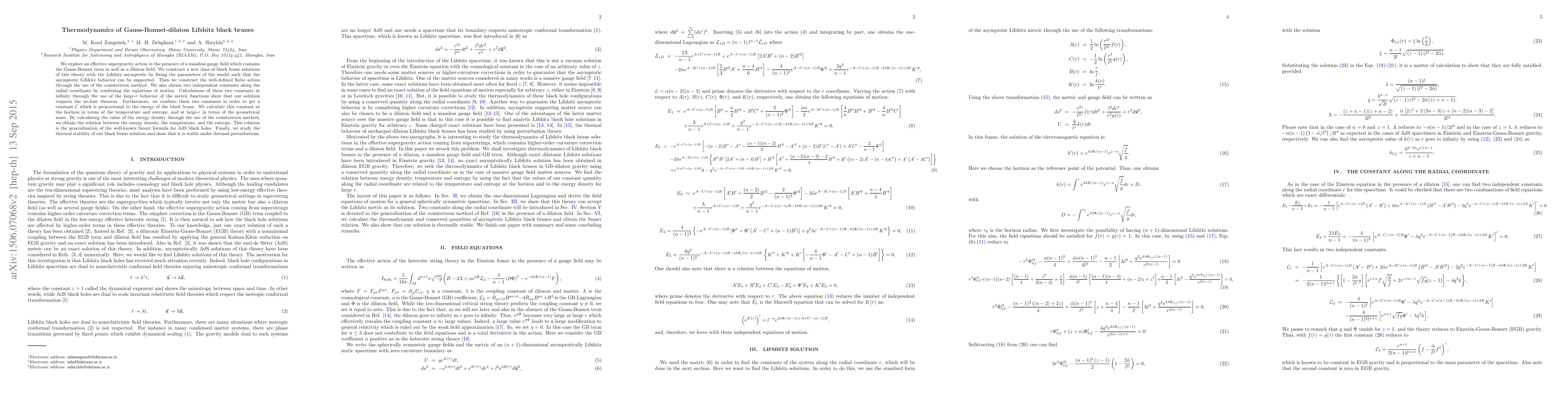 We explore an effective supergravity action in the presence of a massless gauge field which contains the Gauss-Bonnet term as well as a dilaton field. We construct a new class of black brane solutions of this theory with the Lifshitz asymptotic by fixing the parameters of the model such that the asymptotic Lifshitz behavior can be supported. Then we construct the well-defined finite action through the use of the counterterm method. We also obtain two independent constants along the radial coordinate by combining the equations of motion. Calculations of these two constants at infinity through the use of the large-$r$ behavior of the metric functions show that our solution respects the no-hair theorem. Furthermore, we combine these two constants in order to get a constant $C$ which is proportional to the energy of the black brane. We calculate this constant at the horizon in terms of the temperature and entropy, and at large-$r$ in terms of the geometrical mass. By calculating the value of the energy density through the use of the counterterm method, we obtain the relation between the energy density, the temperature, and the entropy. This relation is the generalization of the well-known Smarr formula for AdS black holes. Finally, we study the thermal stability of our black brane solution and show that it is stable under thermal perturbations.