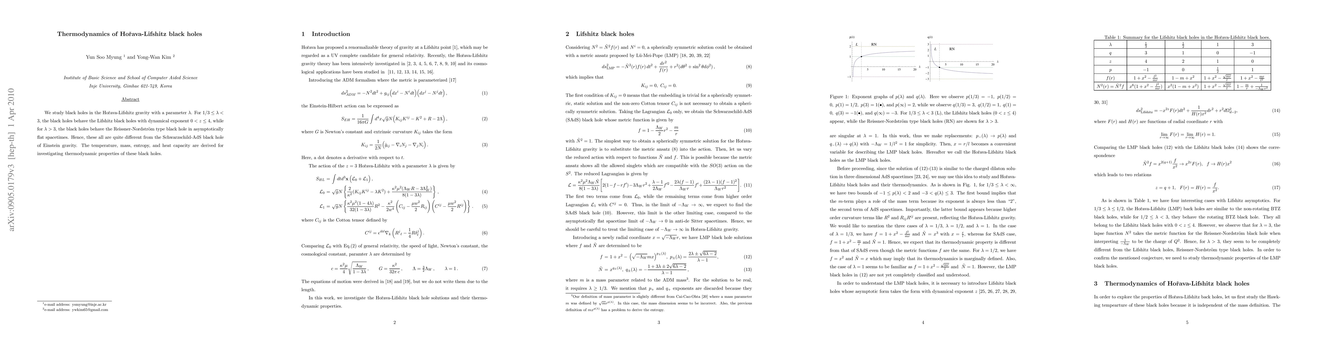 This paper investigates the thermodynamics of black holes in Hořava-Lifshitz gravity, identifying distinct behaviors for different parameter values: Lifshitz black holes for $1/3 \le \lambda < 3$ and Reissner-Nordström-like black holes for $\lambda > 3$, contrasting with the Schwarzschild-AdS black hole in Einstein gravity. Thermodynamic properties including temperature, mass, entropy, and heat capacity are derived.