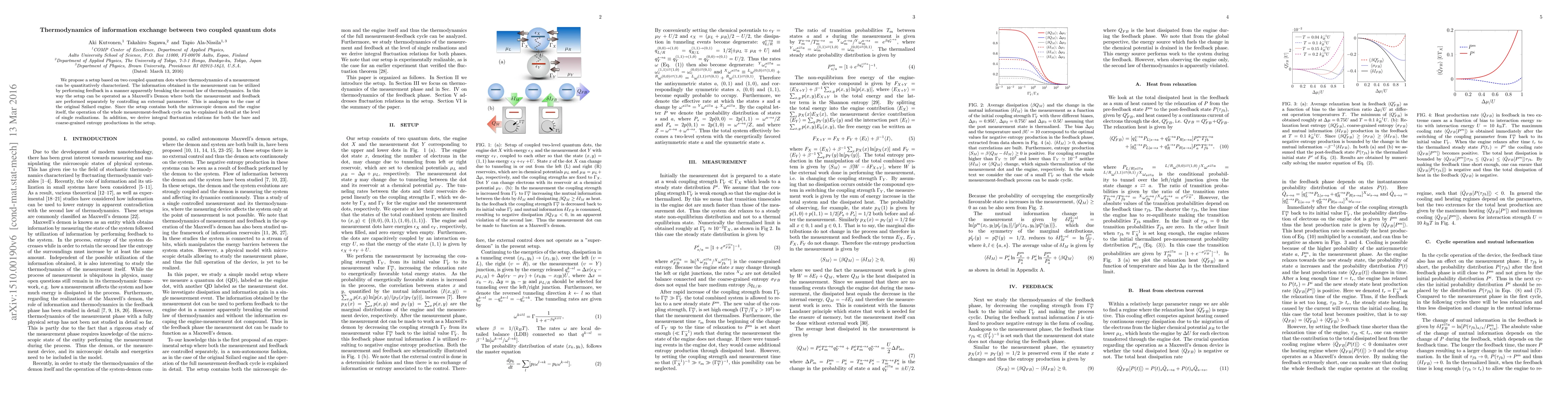 Researchers propose a setup to study thermodynamics of information exchange between two quantum dots, demonstrating a Maxwell's Demon-like effect where feedback appears to break the second law of thermodynamics.
