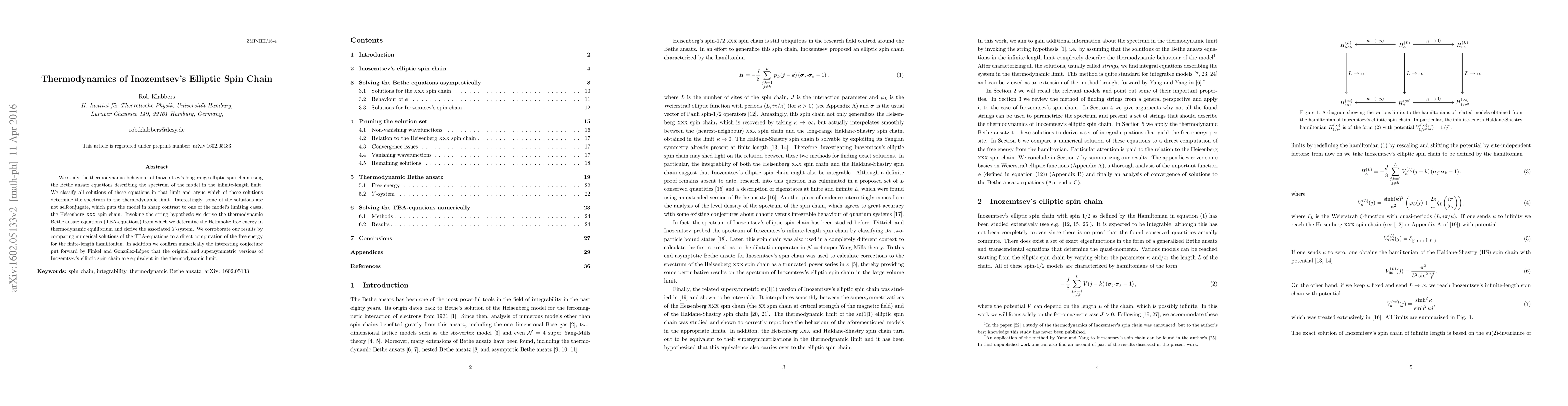 We study the thermodynamic behaviour of Inozemtsev's long-range elliptic spin chain using the Bethe ansatz equations describing the spectrum of the model in the infinite-length limit. We classify all solutions of these equations in that limit and argue which of these solutions determine the spectrum in the thermodynamic limit. Interestingly, some of the solutions are not selfconjugate, which puts the model in sharp contrast to one of the model's limiting cases, the Heisenberg xxx spin chain. Invoking the string hypothesis we derive the thermodynamic Bethe ansatz equations (TBA-equations) from which we determine the Helmholtz free energy in thermodynamic equilibrium and derive the associated Y-system. We corroborate our results by comparing numerical solutions of the TBA-equations to a direct computation of the free energy for the finite-length hamiltonian. In addition we confirm numerically the interesting conjecture put forward by Finkel and Gonz\'alez-L\'opez that the original and supersymmetric versions of Inozemtsev's elliptic spin chain are equivalent in the thermodynamic limit.