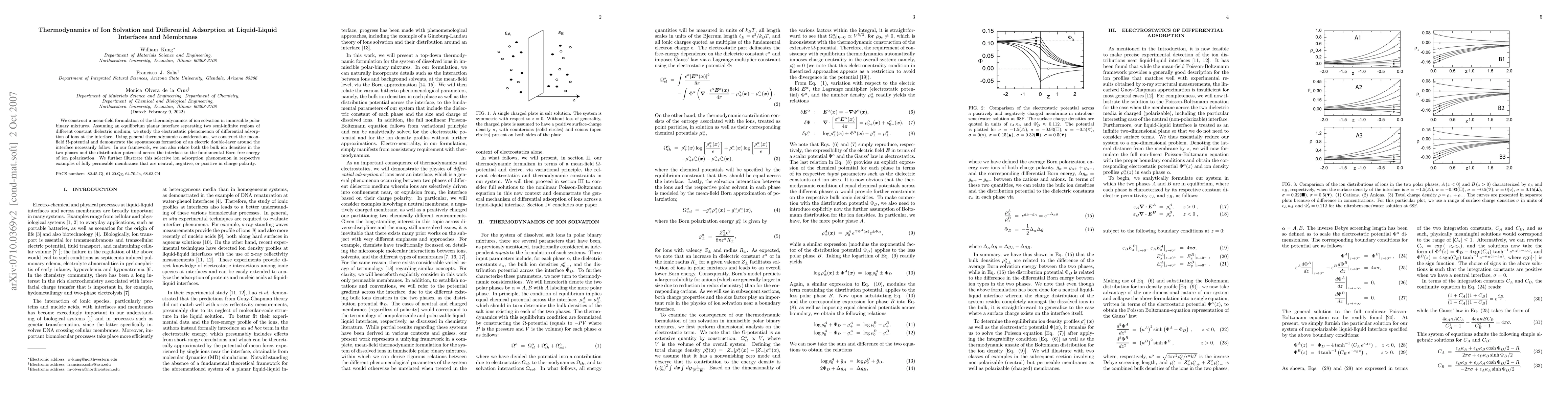 This paper develops a mean-field thermodynamic model for ion solvation in immiscible polar mixtures, focusing on the differential adsorption of ions at liquid-liquid interfaces. It demonstrates the spontaneous formation of an electric double-layer and relates ion distribution to the Born free energy of ion polarization, illustrated by examples of charged membranes.