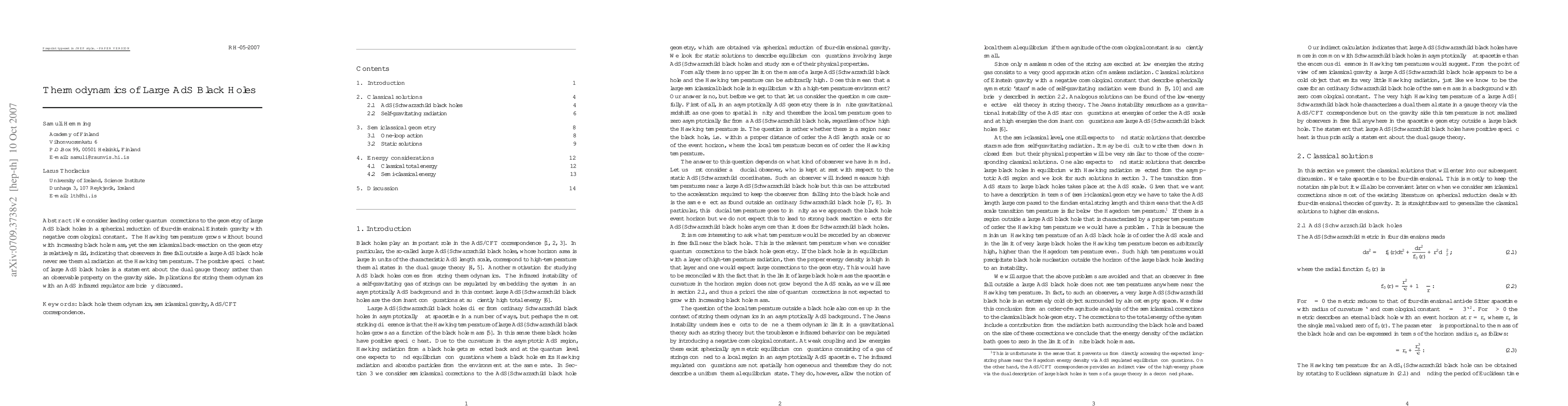 We consider leading order quantum corrections to the geometry of large AdS black holes in a spherical reduction of four-dimensional Einstein gravity with negative cosmological constant. The Hawking temperature grows without bound with increasing black hole mass, yet the semiclassical back-reaction on the geometry is relatively mild, indicating that observers in free fall outside a large AdS black hole never see thermal radiation at the Hawking temperature. The positive specific heat of large AdS black holes is a statement about the dual gauge theory rather than an observable property on the gravity side. Implications for string thermodynamics with an AdS infrared regulator are briefly discussed.