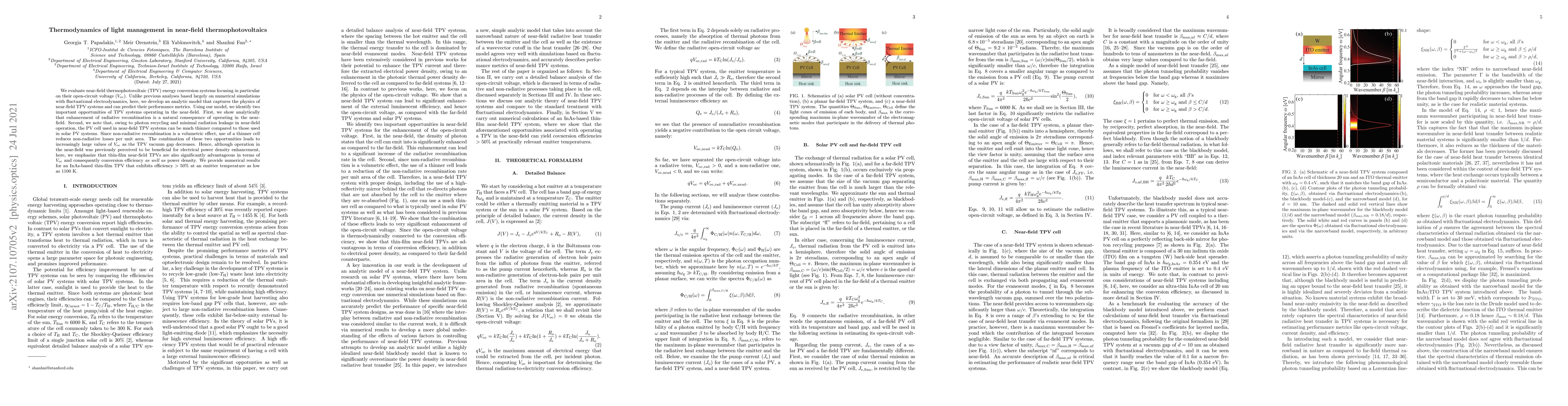 This research presents an analytic model for near-field thermophotovoltaic (TPV) systems, highlighting two key advantages: enhanced radiative recombination due to near-field operation and the potential for thinner PV cells, reducing non-radiative losses. The study predicts significantly improved open-circuit voltage (Voc) and conversion efficiency, exemplified by a >50% efficient InAs-based thin-film TPV at 1100 K.