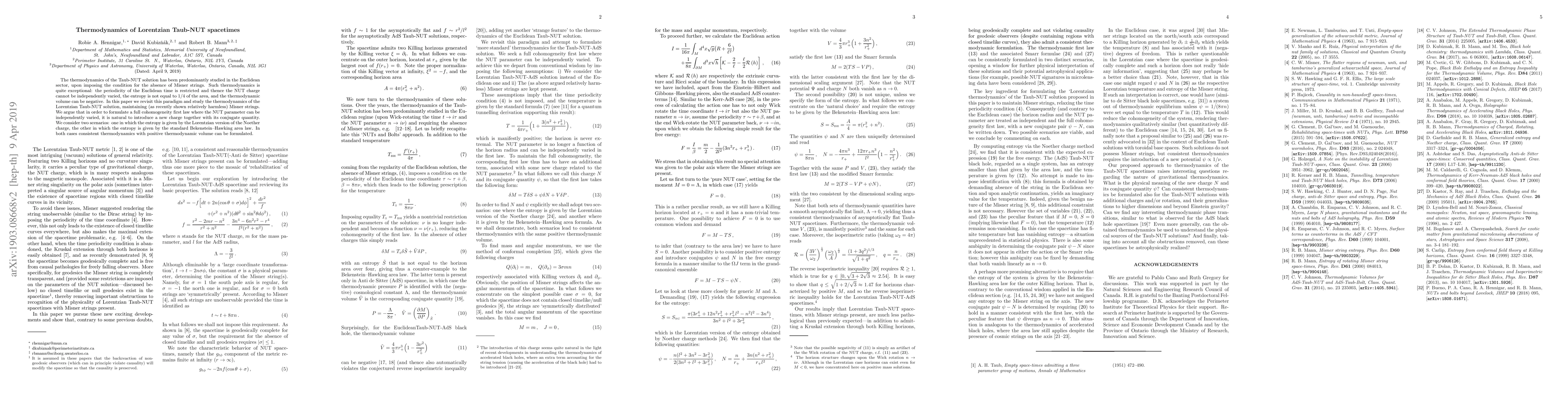 This paper explores the thermodynamics of Lorentzian Taub-NUT spacetimes, introducing a new charge to formulate a full cohomogeneity first law. It considers two entropy scenarios, achieving consistent thermodynamics with positive thermodynamic volume in both cases.