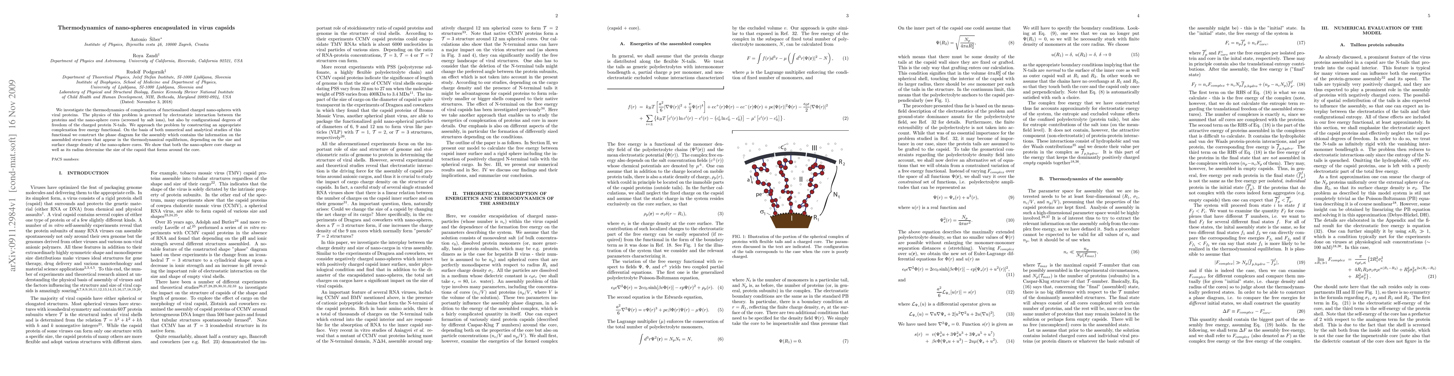 This paper explores the thermodynamic interactions between charged nano-spheres and viral proteins, focusing on the electrostatic forces and protein tail configurations that govern the assembly process. The study constructs a complexation free energy functional to predict the equilibrium structures formed by these interactions, revealing how nano-sphere size and charge influence capsid formation.