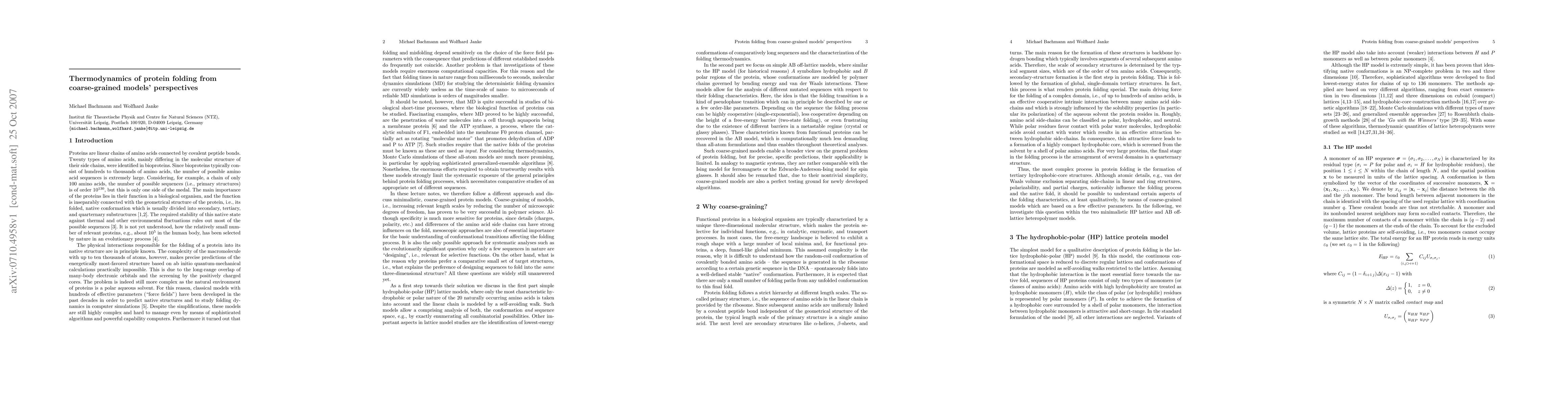 This paper explores the thermodynamics of protein folding using coarse-grained models, focusing on mesoscopic descriptions of folding, aggregation, and interactions with membranes. It highlights the complexity of conformational transitions due to finite amino acid sequences, emphasizing the need for pseudouniversal analysis to understand structure formation processes.