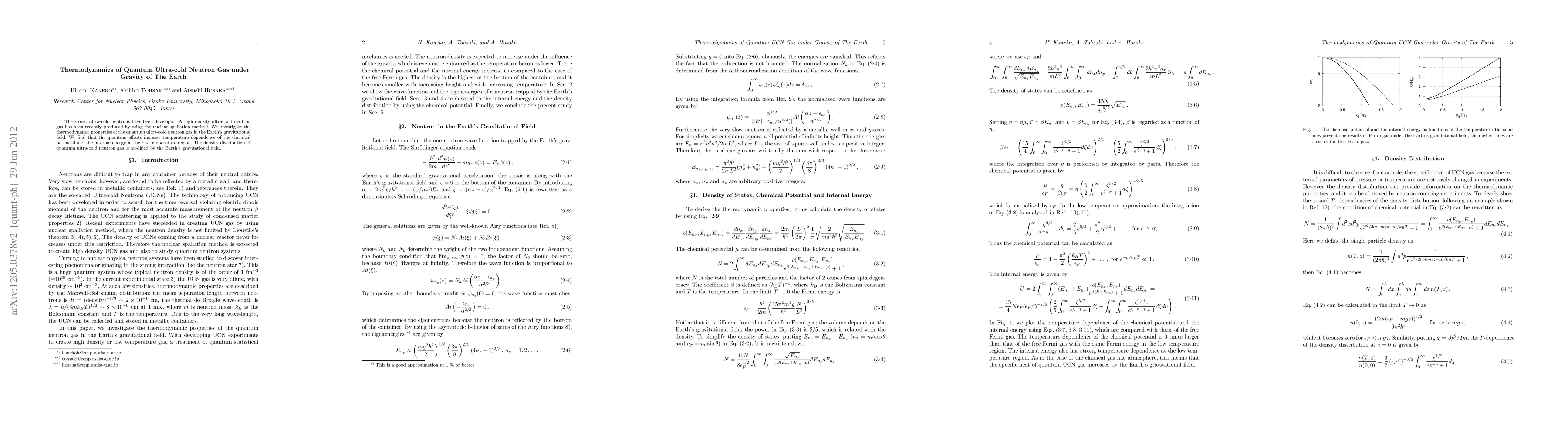 This study investigates the thermodynamic properties of a high-density ultra-cold neutron gas produced via nuclear spallation, focusing on quantum effects under Earth's gravity. It finds that quantum effects enhance temperature dependence of chemical potential and internal energy at low temperatures, and modify the density distribution due to gravitational influence.