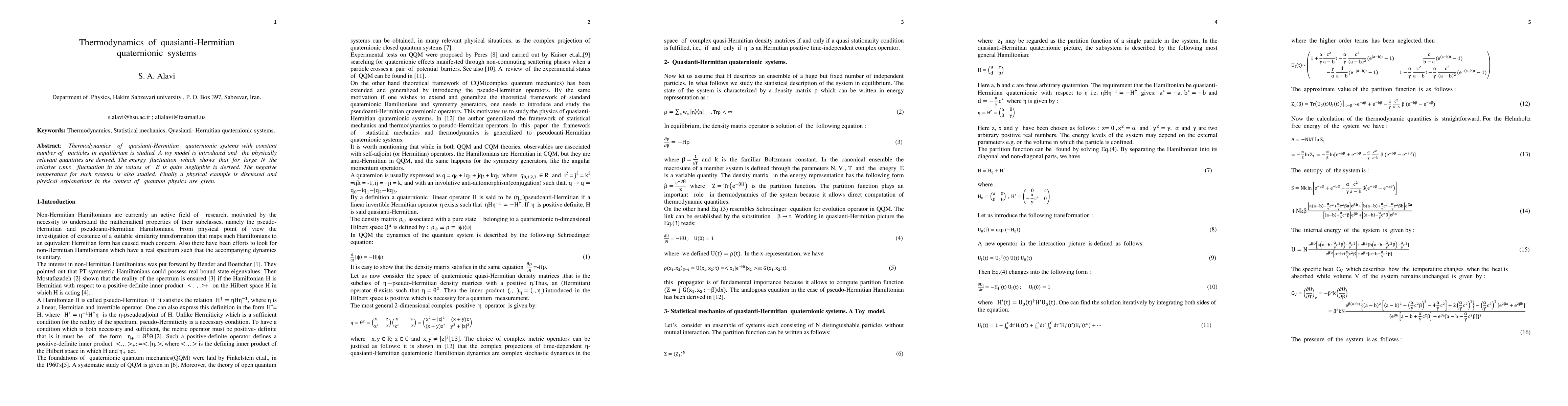 Thermodynamics of quasianti-Hermitian quaternionic systems with constant number of particles in equilibrium is studied. A toy model is introduced and the physically relevant quantities are derived. The energy fluctuation which shows that for large N the relative r.m.s fluctuation in the values of E is quite negligible is derived. The negative temperature for such systems is also studied. Finally a physical example is discussed and physical explanations in the context of quantum physics are given.