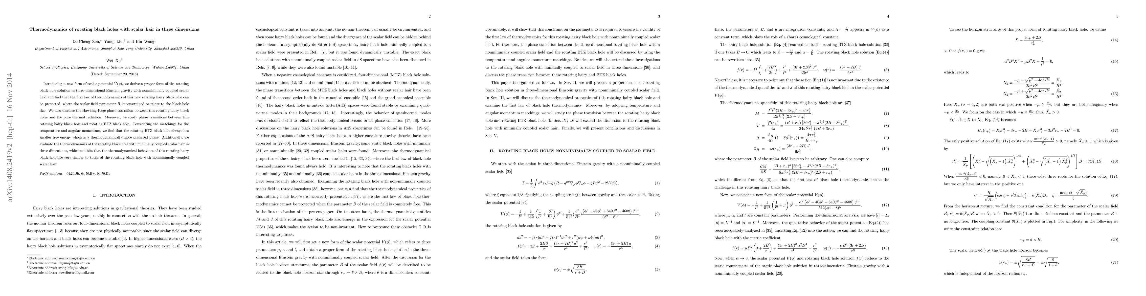 This research explores rotating black holes in three-dimensional Einstein gravity with a nonminimally coupled scalar field, deriving new solutions and thermodynamics. It reveals thermodynamic stability and discusses the Hawking-Page phase transition, finding that the rotating BTZ black hole is thermodynamically preferred.