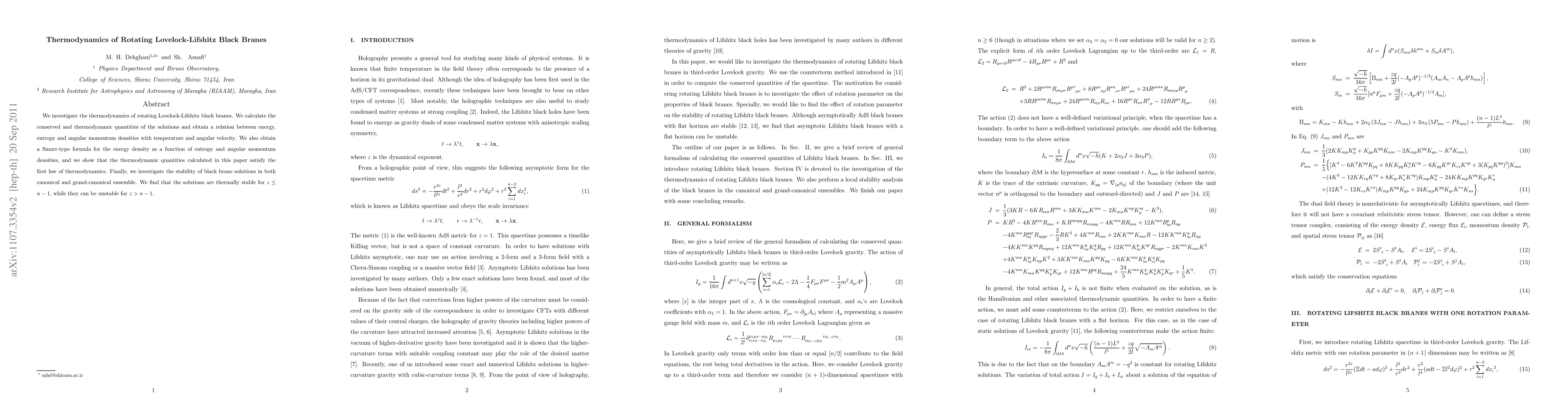 This paper examines the thermodynamics of rotating Lovelock-Lifshitz black branes, deriving conserved and thermodynamic quantities and establishing a Smarr-type formula. It finds thermodynamic stability for $z\leq n-1$ and instability for $z>n-1$.