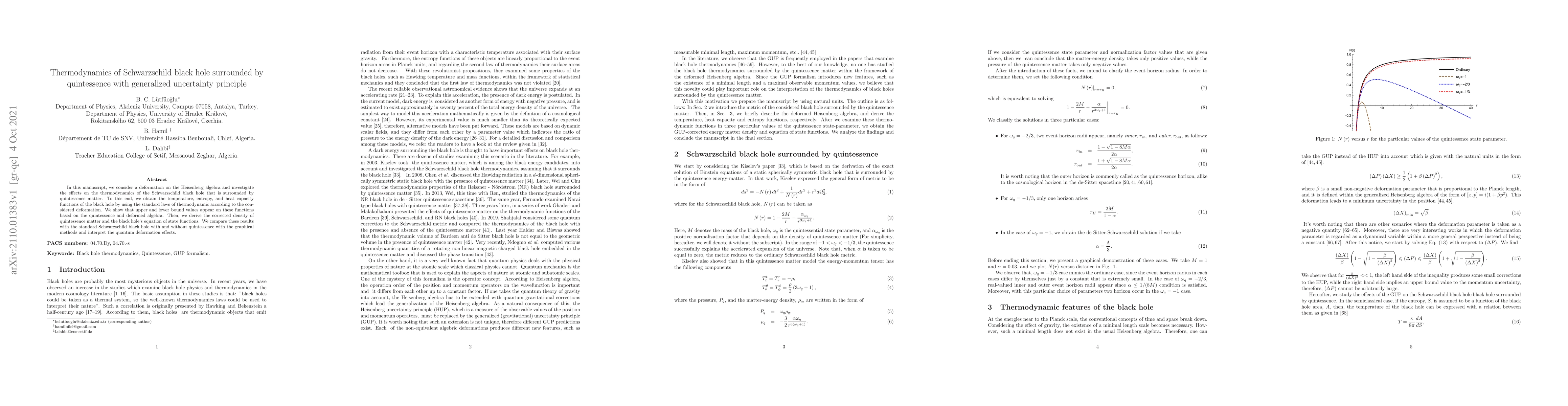 This paper explores the thermodynamics of a Schwarzschild black hole enveloped by quintessence under a generalized uncertainty principle. It derives temperature, entropy, and heat capacity functions, revealing upper and lower bounds influenced by quintessence and quantum deformation, and compares these results graphically with standard Schwarzschild black hole models.