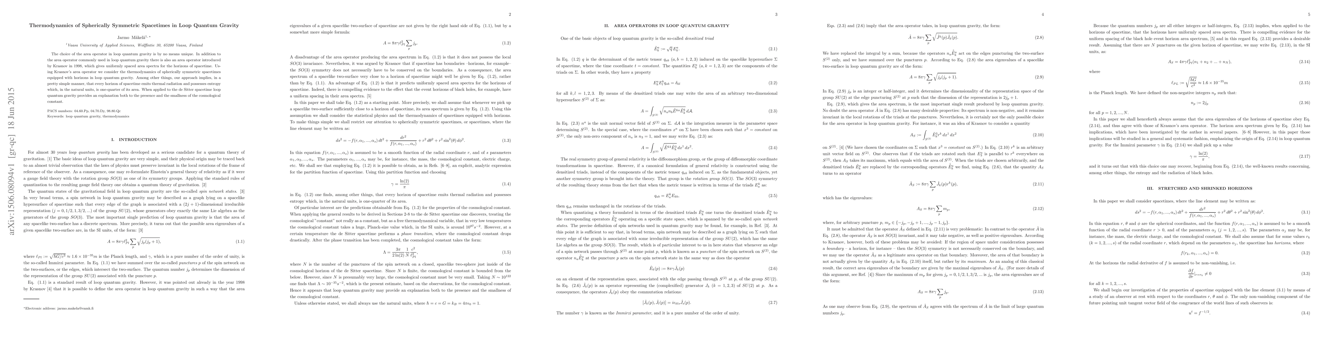 This paper explores the thermodynamics of spherically symmetric spacetimes using Krasnov's area operator in loop quantum gravity, revealing that every horizon emits thermal radiation and possesses emtropy proportional to its area. It also explains the presence and smallness of the cosmological constant in de Sitter spacetime.