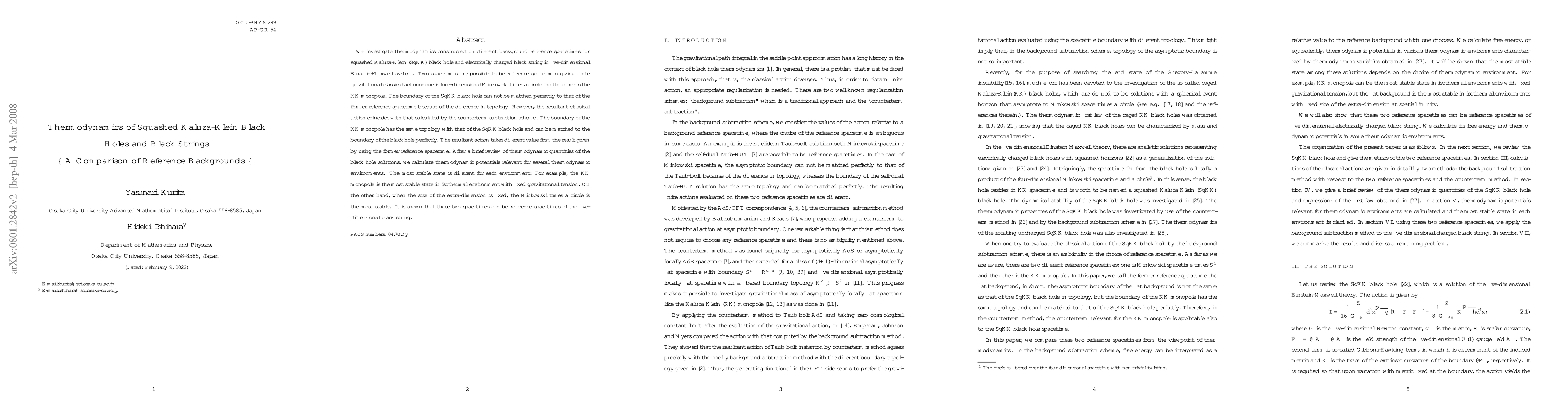 Researchers investigated thermodynamics of squashed Kaluza-Klein black holes and strings in 5D Einstein-Maxwell system, comparing two reference spacetimes with different topologies.