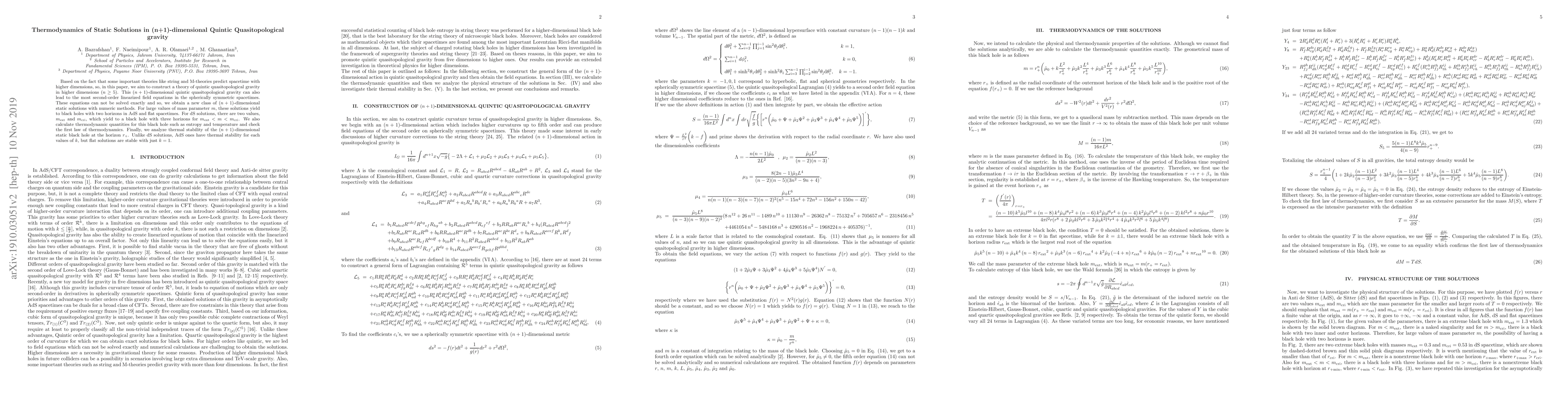 construct a theory of quintic quasitopological gravity in higher dimensions