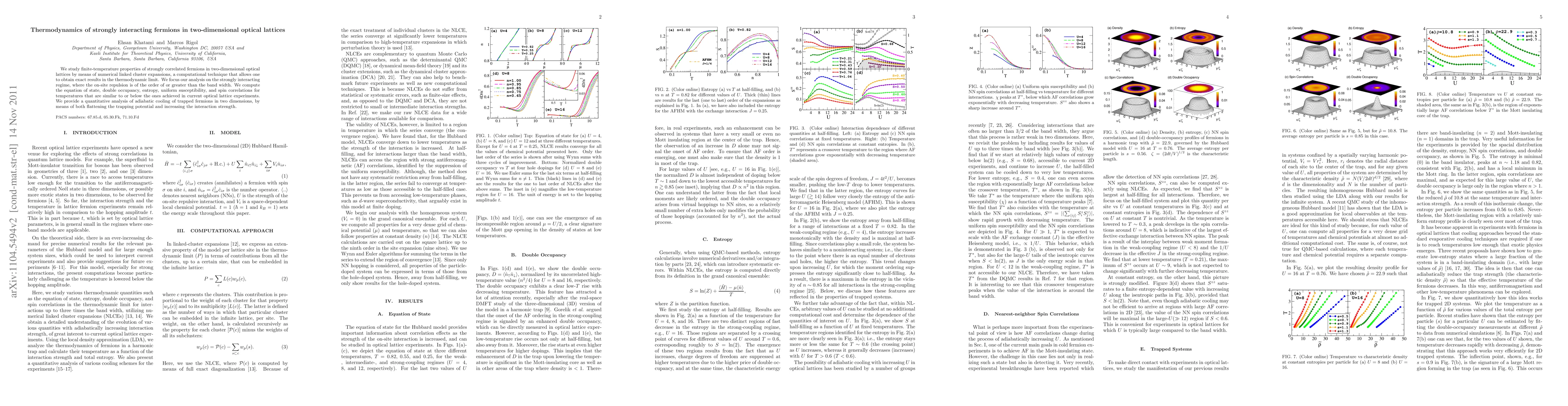 This paper employs numerical linked cluster expansions to study finite-temperature properties of strongly interacting fermions in two-dimensional optical lattices, focusing on the regime where on-site repulsion exceeds the bandwidth. It provides exact results for the equation of state, double occupancy, entropy, susceptibility, and spin correlations, and analyzes adiabatic cooling methods for trapped fermions.