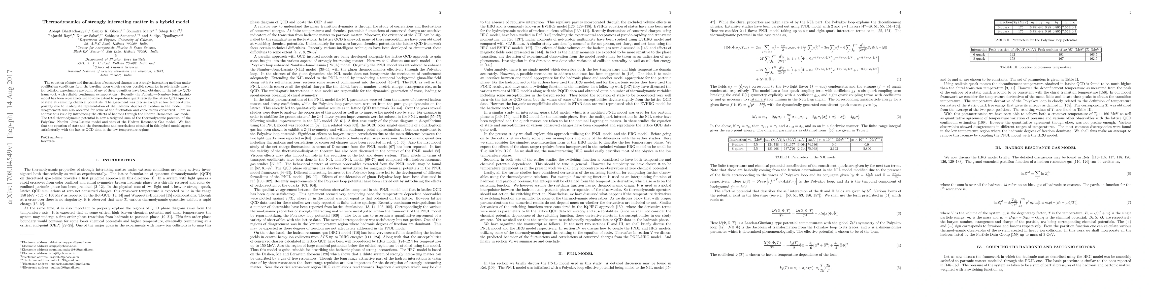 The equation of state and fluctuations of conserved charges in a strongly interacting medium under equilibrium conditions form the baseline upon which various possible scenarios in relativistic heavy-ion collision experiments are built. Many of these quantities have been obtained in the lattice QCD framework with reliable continuum extrapolations. Recently the Polyakov$-$Nambu$-$Jona-Lasinio model has been reparametrized to some extent to reproduce quantitatively the lattice QCD equation of state at vanishing chemical potentials. The agreement was precise except at low temperatures, possibly due to inadequate representation of the hadronic degrees of freedom in the model. This disagreement was also observed for some of the fluctuation and correlations considered. Here we address this issue by introducing the effects of hadrons through the Hadron Resonance Gas model. The total thermodynamic potential is now a weighted sum of the thermodynamic potential of the Polyakov$-$Nambu$-$Jona-Lasinio model and that of the Hadron Resonance Gas model. We find that the equation of state and the fluctuations and correlations obtained in this hybrid model agrees satisfactorily with the lattice QCD data in the low temperature regime.