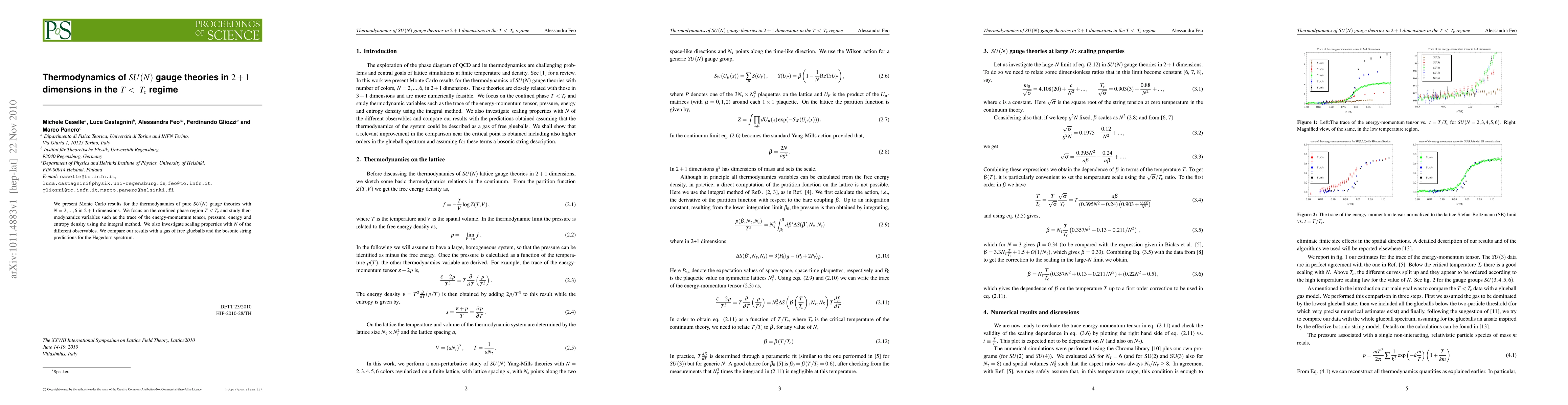 We present Monte Carlo results for the thermodynamics of pure SU(N) gauge