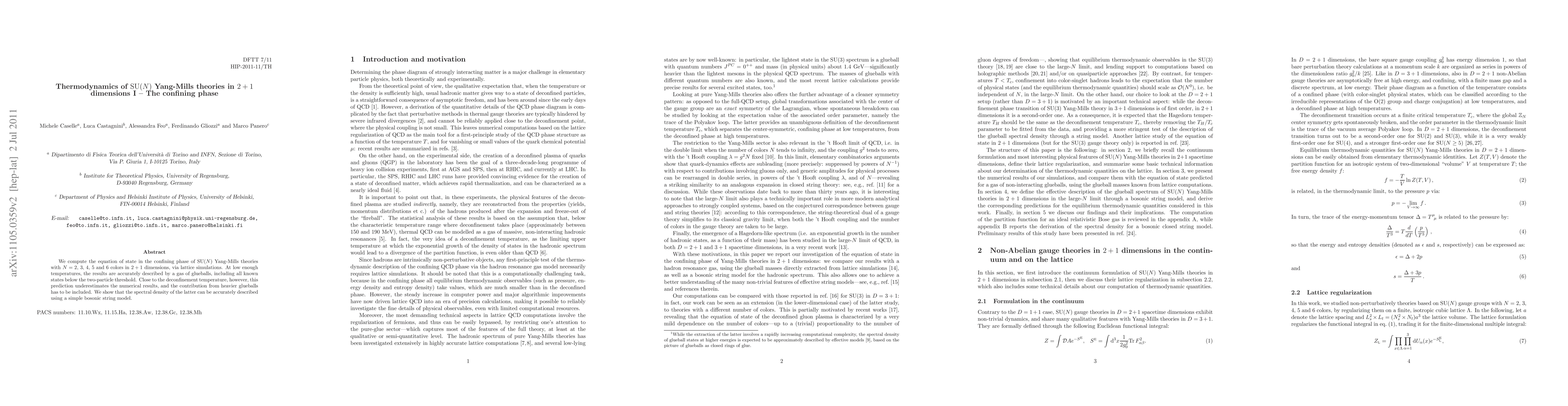 This paper computes the equation of state in the confining phase of SU(N) Yang-Mills theories in 2+1 dimensions using lattice simulations, finding that low temperatures are well-described by a glueball gas, while heavier glueballs become significant near the deconfinement temperature, with their spectral density modeled by a bosonic string.