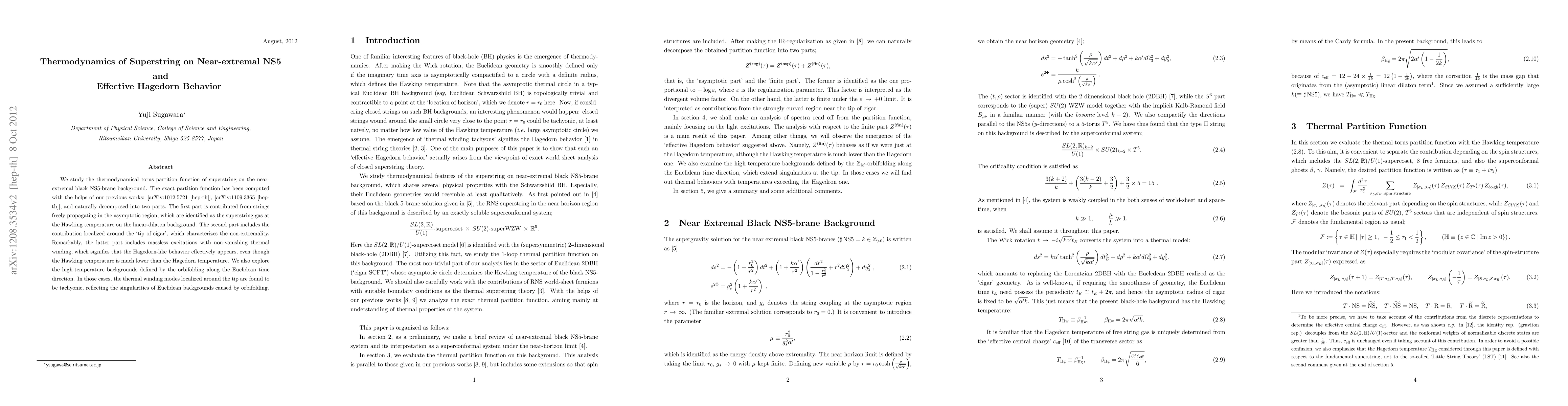 This paper examines the thermodynamic partition function of superstrings on near-extremal NS5-brane backgrounds, revealing a decomposition into contributions from freely propagating strings and localized excitations. The localized part exhibits Hagedorn-like behavior despite a lower Hawking temperature, with tachyonic modes observed in high-temperature orbifolding scenarios.