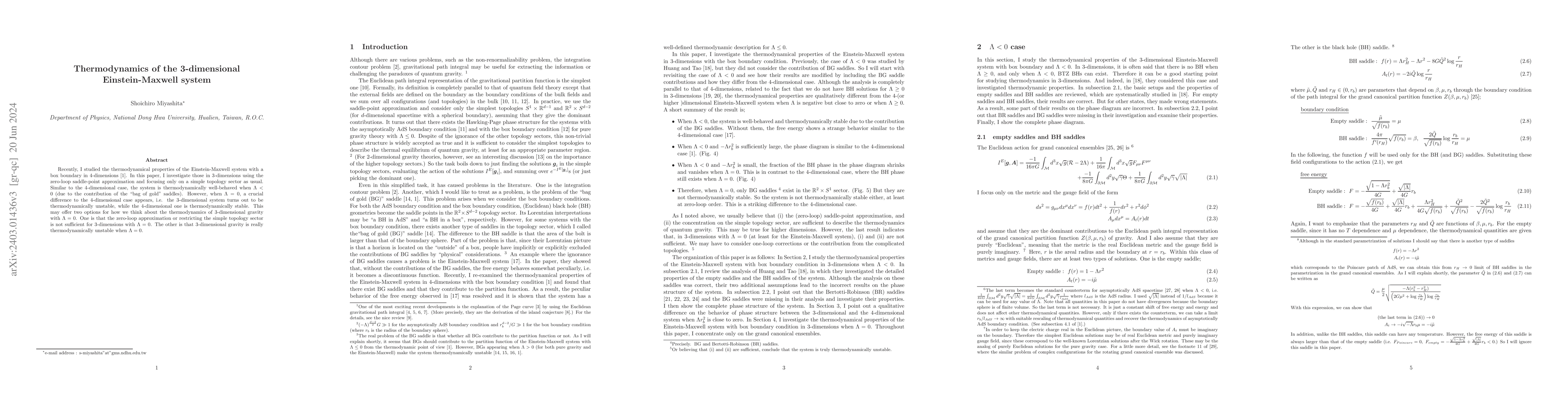 Recently, I studied the thermodynamical properties of the Einstein-Maxwell system with a box boundary in 4-dimensions [1](JHEP 04 (2024) 083). In this paper, I investigate those in 3-dimensions using the zero-loop saddle-point approximation and focusing only on a simple topology sector as usual. Similar to the 4-dimensional case, the system is thermodynamically well-behaved when $\Lambda<0$ (due to the contribution of the "bag of gold" saddles). However, when $\Lambda=0$, a crucial difference to the 4-dimensional case appears, i.e. the 3-dimensional system turns out to be thermodynamically unstable, while the 4-dimensional one is thermodynamically stable. This may offer two options for how we think about the thermodynamics of 3-dimensional gravity with $\Lambda=0$. One is that the zero-loop approximation or restricting the simple topology sector is not sufficient for 3-dimensions with $\Lambda=0$. The other is that 3-dimensional gravity is really thermodynamically unstable when $\Lambda=0$.