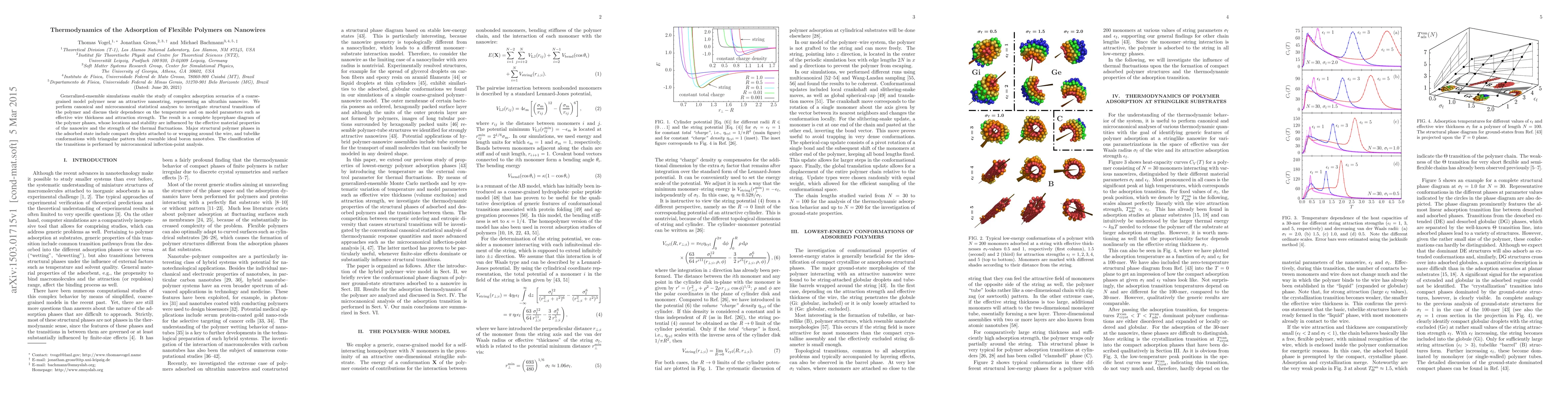 This study uses generalized-ensemble simulations to explore the adsorption of flexible polymers on nanowires, revealing structural transitions influenced by temperature and nanowire properties. The research produces a comprehensive hyperphase diagram detailing polymer phases, including compact droplets and tubelike conformations, classified via microcanonical analysis.