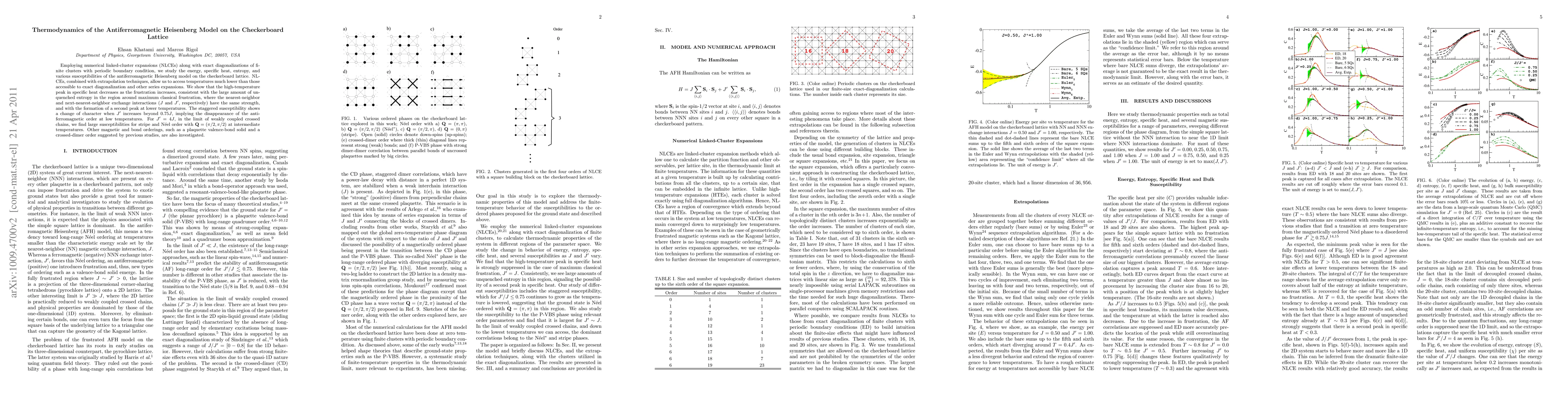 Researchers studied the thermodynamics of the antiferromagnetic Heisenberg model on a checkerboard lattice, finding that frustration leads to changes in specific heat and susceptibility, and that certain configurations can exhibit stripe or Neel order at low temperatures.