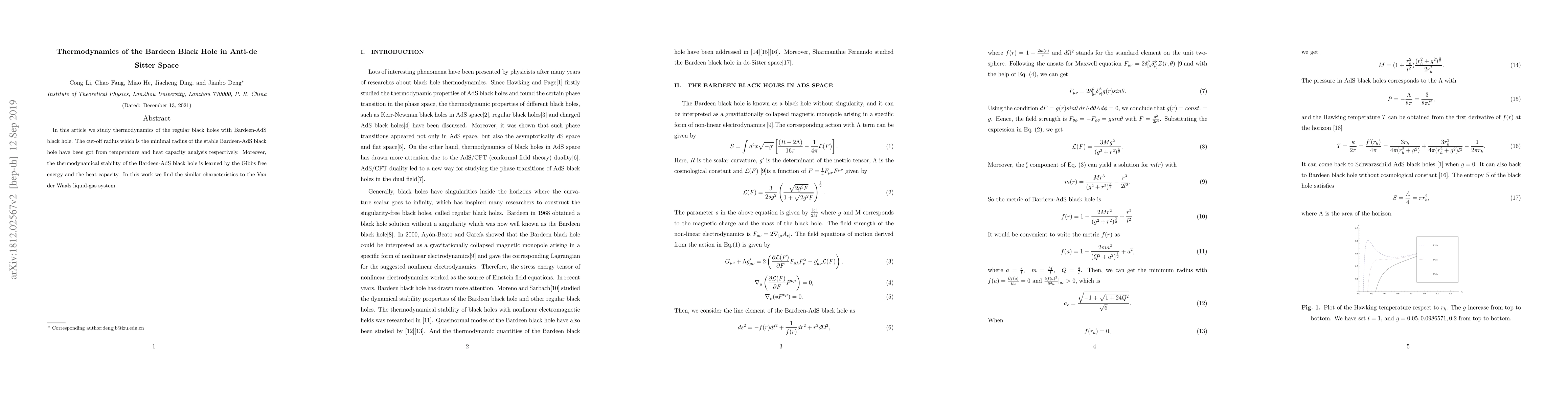 This paper investigates the thermodynamics of Bardeen black holes in Anti-de Sitter space, identifying a minimal stable radius through $T$-$r_{h}$ diagrams and analyzing the effects of a non-linear electrodynamics parameter $g$. It finds no second-order phase transition for $g>g_{m}$ and discusses thermodynamic stability via Gibbs free energy and heat capacity.