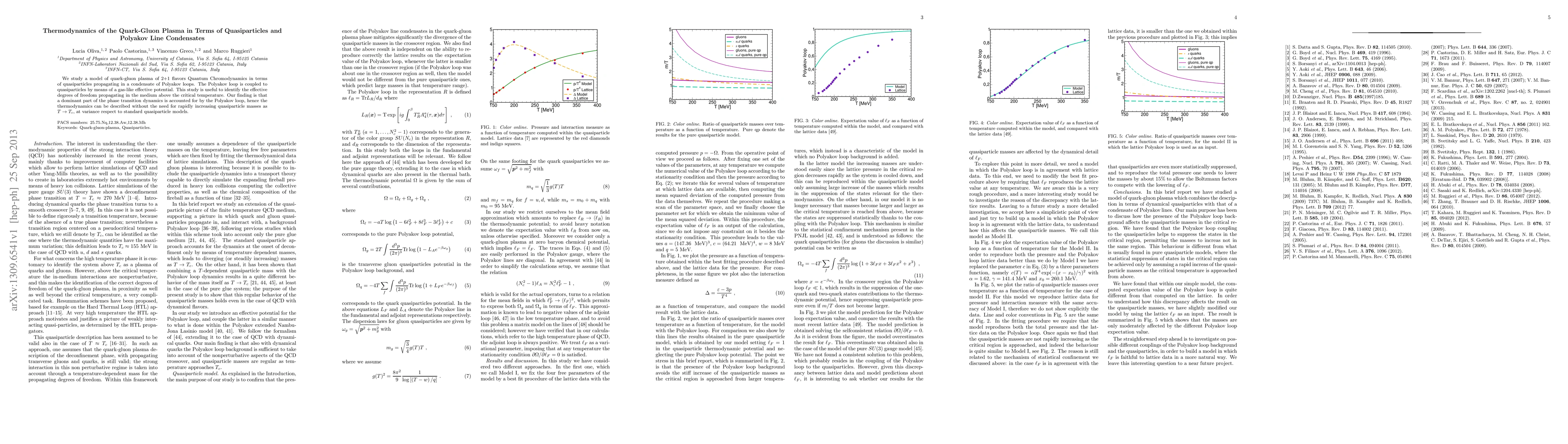 We study a model of quark-gluon plasma of 2+1 flavors Quantum Chromodynamics in terms of quasiparticles propagating in a condensate of Polyakov loops. The Polyakov loop is coupled to quasiparticles by means of a gas-like effective potential. This study is useful to identify the effective degrees of freedom propagating in the medium above the critical temperature. Our finding is that a dominant part of the phase transition dynamics is accounted for by the Polyakov loop, hence the thermodynamics can be described without the need for rapidly increasing quasiparticle masses as $T \rightarrow T_c$, at variance respect to standard quasiparticle models.