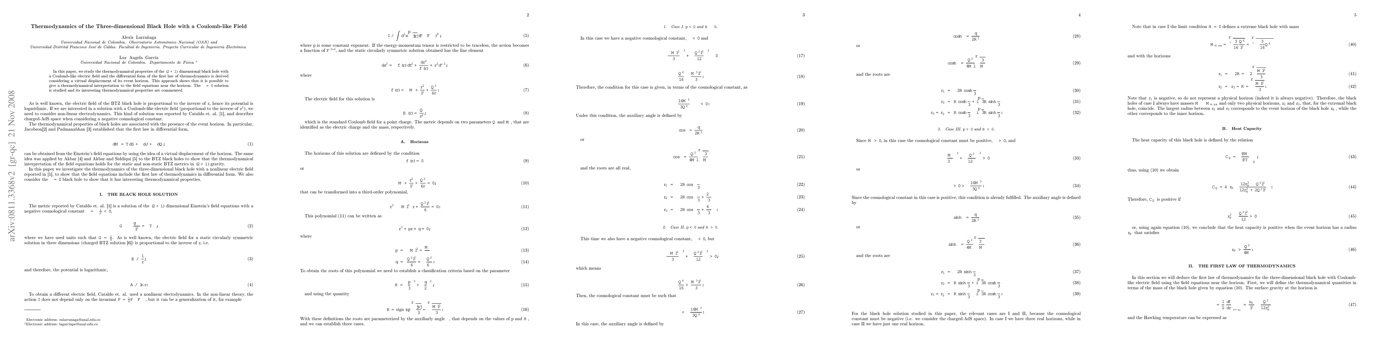 This paper studies the thermodynamics of a 2D black hole with a Coulomb-like electric field, deriving a new thermodynamic interpretation near the event horizon. It finds interesting properties in the Lambda=0 solution.