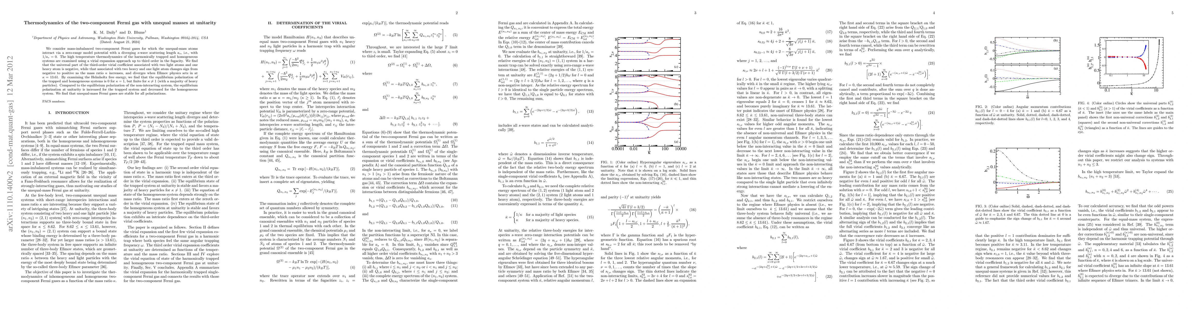 This paper investigates the high-temperature thermodynamics of mass-imbalanced two-component Fermi gases at unitarity, revealing that the third-order virial coefficient changes sign with mass ratio and diverges at Efimov physics onset. The equilibrium polarization is zero for equal masses but finite for unequal masses, with stability maintained across all polarizations.