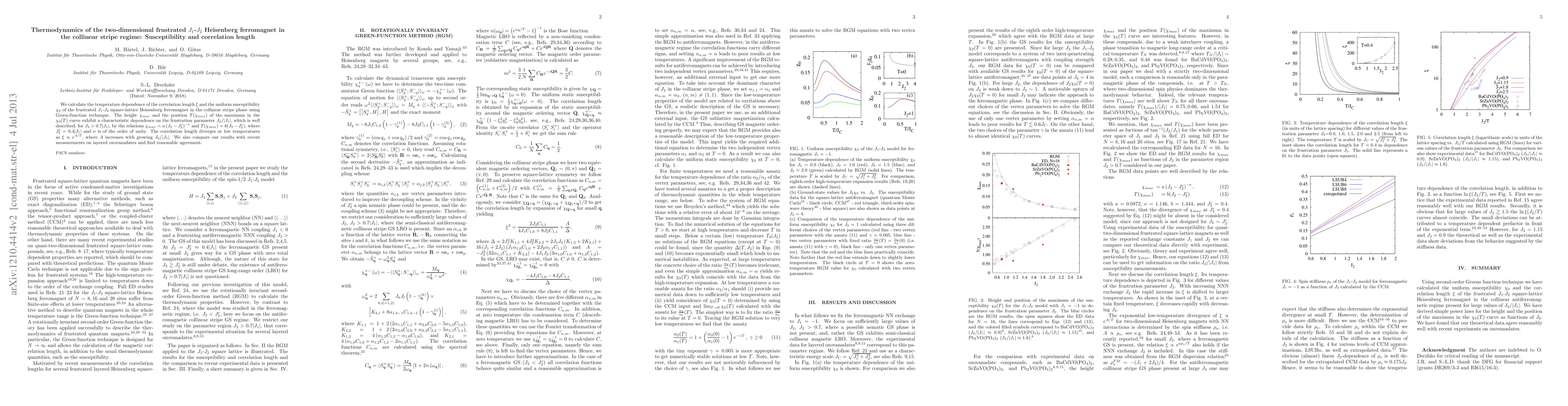 We calculate the temperature dependence of the correlation length xi and the uniform susceptibility chi_0 of the frustrated J1-J2 square-lattice Heisenberg ferromagnet in the collinear stripe phase using Green-function technique. The height chi_{max} and the position T(chi_{max}) of the maximum in the chi_0(T) curve exhibit a characteristic dependence on the frustration parameter J2/|J1|, which is well described by power laws, chi_{max}=a(J2-J2^c)^{-nu} and T(chi_{max})=b(J_2-J_2^c), where J2^c = 0.4 and nu is of the order of unity.The correlation length diverges at low temperatures as xi \propto e^{A/T}, where A increases with growing J2/|J1|. We also compare our results with recent measurements on layered vanadium phosphates and find reasonable agreement.