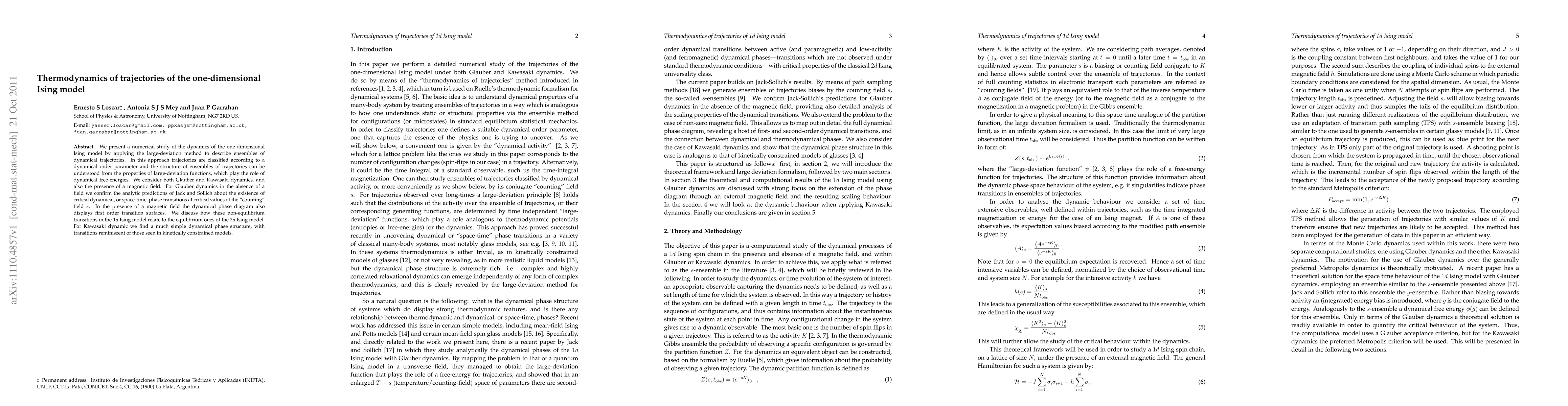 We present a numerical study of the dynamics of the one-dimensional Ising model by applying the large-deviation method to describe ensembles of dynamical trajectories. In this approach trajectories are classified according to a dynamical order parameter and the structure of ensembles of trajectories can be understood from the properties of large-deviation functions, which play the role of dynamical free-energies. We consider both Glauber and Kawasaki dynamics, and also the presence of a magnetic field. For Glauber dynamics in the absence of a field we confirm the analytic predictions of Jack and Sollich about the existence of critical dynamical, or space-time, phase transitions at critical values of the "counting" field $s$. In the presence of a magnetic field the dynamical phase diagram also displays first order transition surfaces. We discuss how these non-equilibrium transitions in the 1$d$ Ising model relate to the equilibrium ones of the 2$d$ Ising model. For Kawasaki dynamics we find a much simple dynamical phase structure, with transitions reminiscent of those seen in kinetically constrained models.