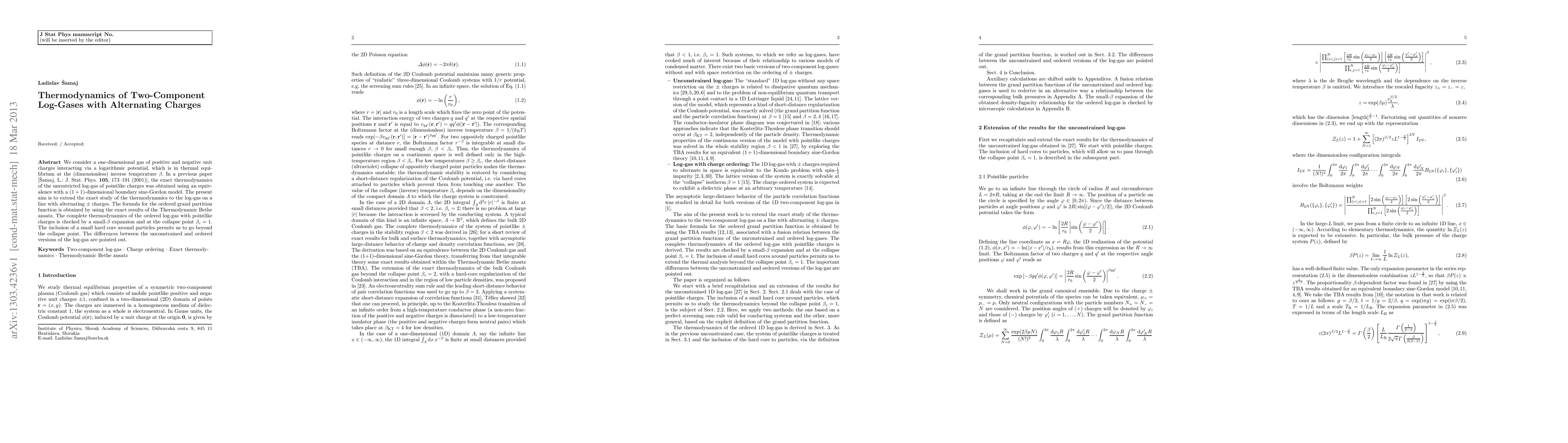 Researchers studied the thermodynamics of a one-dimensional gas with alternating positive and negative unit charges interacting via a logarithmic potential. They found that the thermodynamics can be exactly calculated using the Thermodynamic Bethe ansatz, and the differences between constrained and unconstrained log-gases are significant.