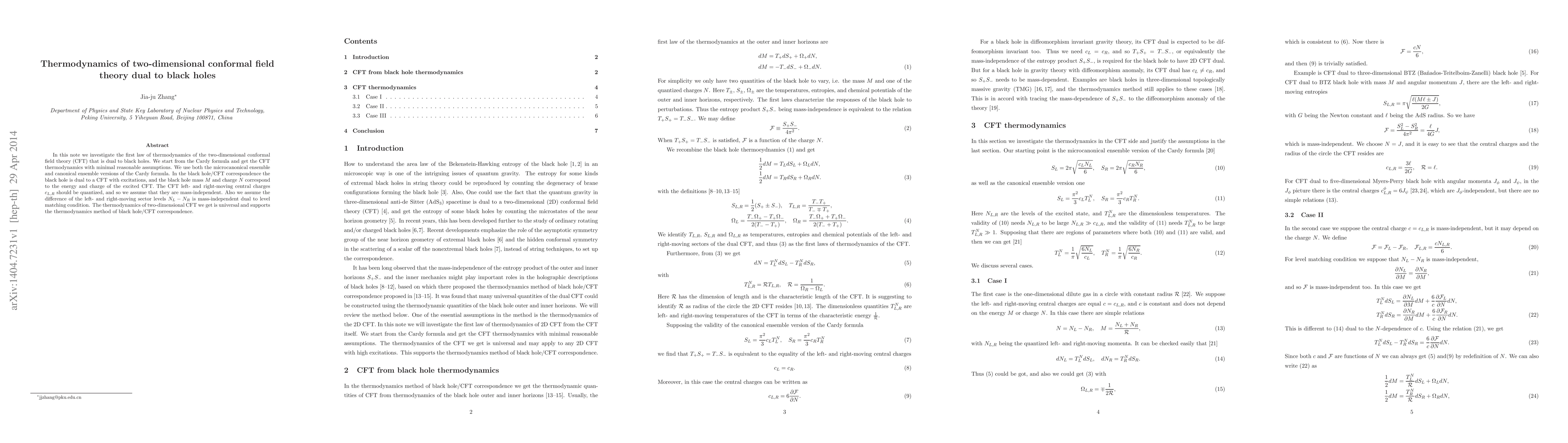 The research uses thermodynamic methods to study black hole horizons and their CFT counterparts.