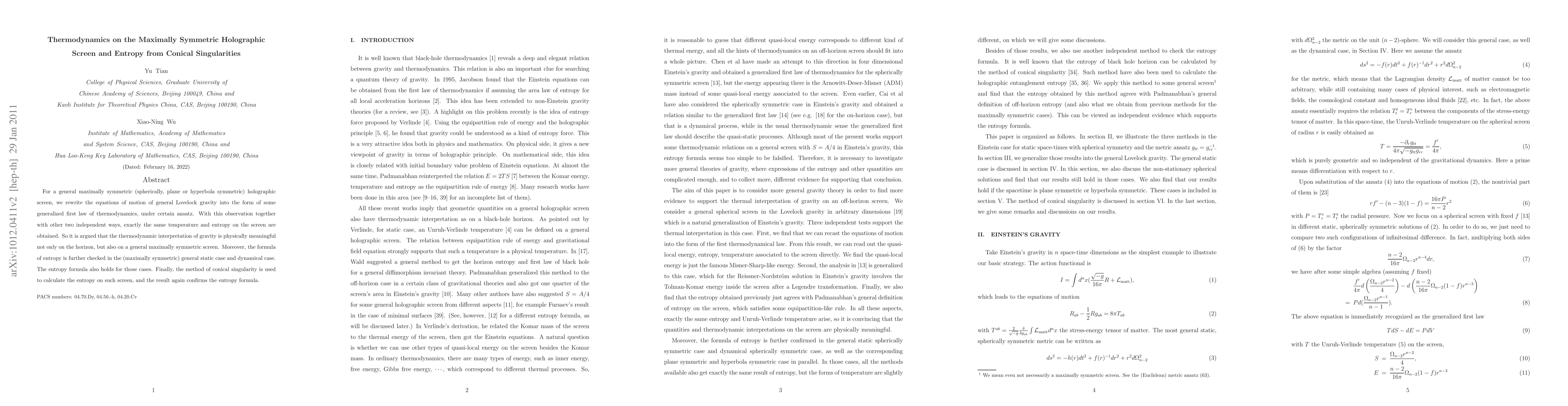 For a general maximally symmetric (spherically, plane or hyperbola symmetric) holographic screen, we rewrite the equations of motion of general Lovelock gravity into the form of some generalized first law of thermodynamics, under certain ansatz. With this observation together with other two independent ways, exactly the same temperature and entropy on the screen are obtained. So it is argued that the thermodynamic interpretation of gravity is physically meaningful not only on the horizon, but also on a general maximally symmetric screen. Moreover, the formula of entropy is further checked in the (maximally symmetric) general static case and dynamical case. The entropy formula also holds for those cases. Finally, the method of conical singularity is used to calculate the entropy on such screen, and the result again confirms the entropy formula.