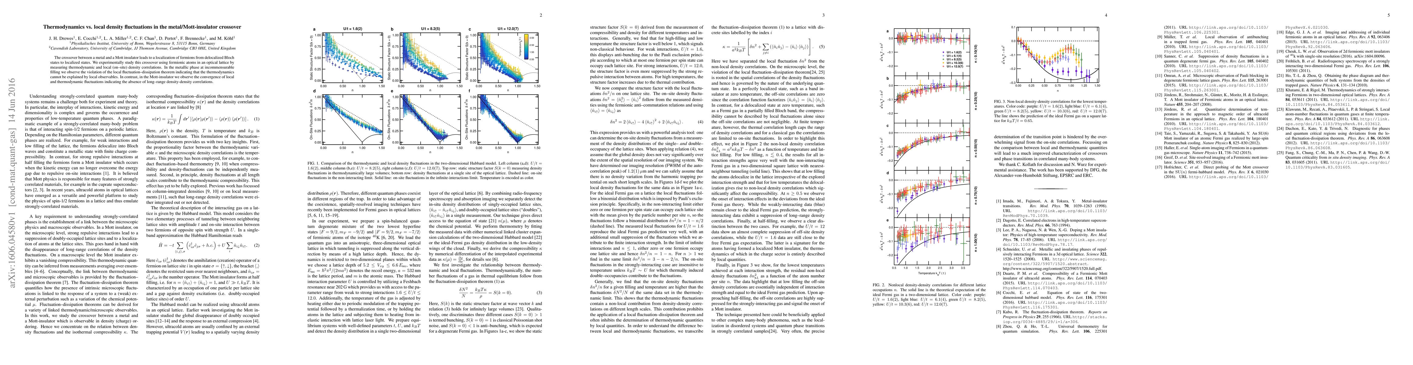 This study experimentally investigates the metal/Mott-insulator crossover using fermionic atoms in an optical lattice, finding that thermodynamic properties in the metallic phase cannot be explained by local density fluctuations, while the Mott-insulator phase shows convergence of local and thermodynamic fluctuations.