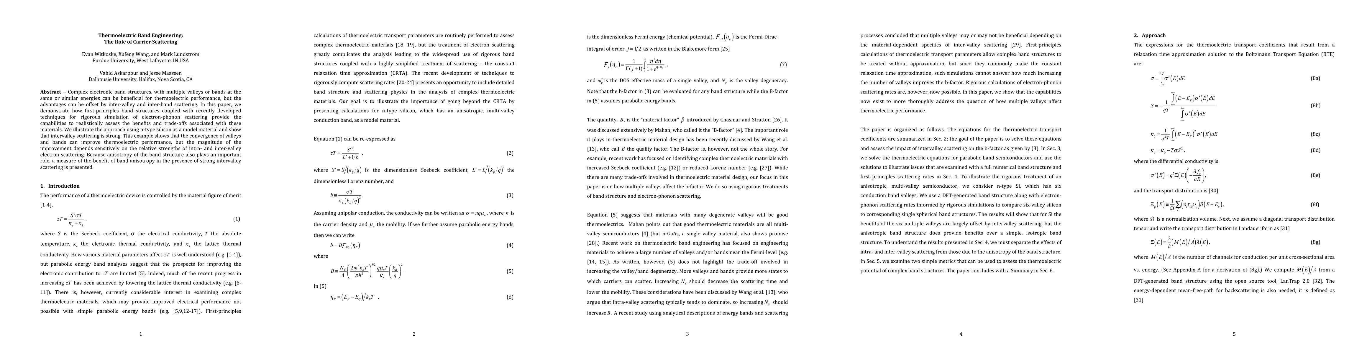 Complex electronic band structures, with multiple valleys or bands at the same or similar energies can be beneficial for thermoelectric performance, but the advantages can be offset by inter-valley and inter-band scattering. In this paper, we demonstrate how first-principles band structures coupled with recently developed techniques for rigorous simulation of electron-phonon scattering provide the capabilities to realistically assess the benefits and trade-offs associated with these materials. We illustrate the approach using n-type silicon as a model material and show that intervalley scattering is strong. This example shows that the convergence of valleys and bands can improve thermoelectric performance, but the magnitude of the improvement depends sensitively on the relative strengths of intra- and inter-valley electron scattering. Because anisotropy of the band structure also plays an important role, a measure of the benefit of band anisotropy in the presence of strong intervalley scattering is presented.