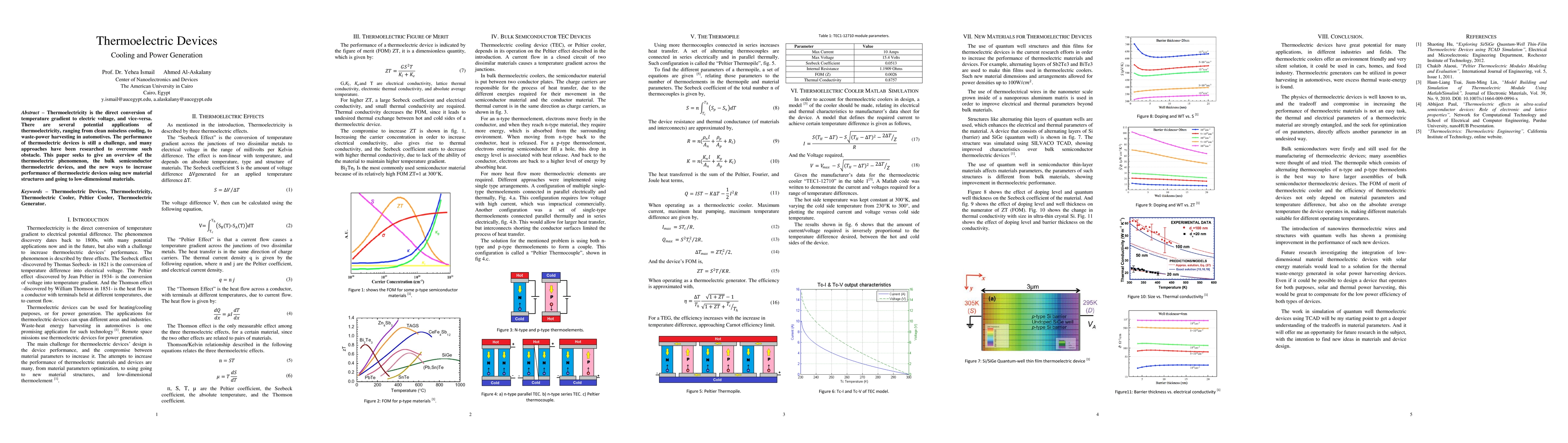 This paper provides an overview of thermoelectric phenomena and explores the performance challenges of bulk semiconductor thermoelectric devices, proposing innovative material structures and low-dimensional materials to enhance thermoelectric efficiency for cooling and power generation.