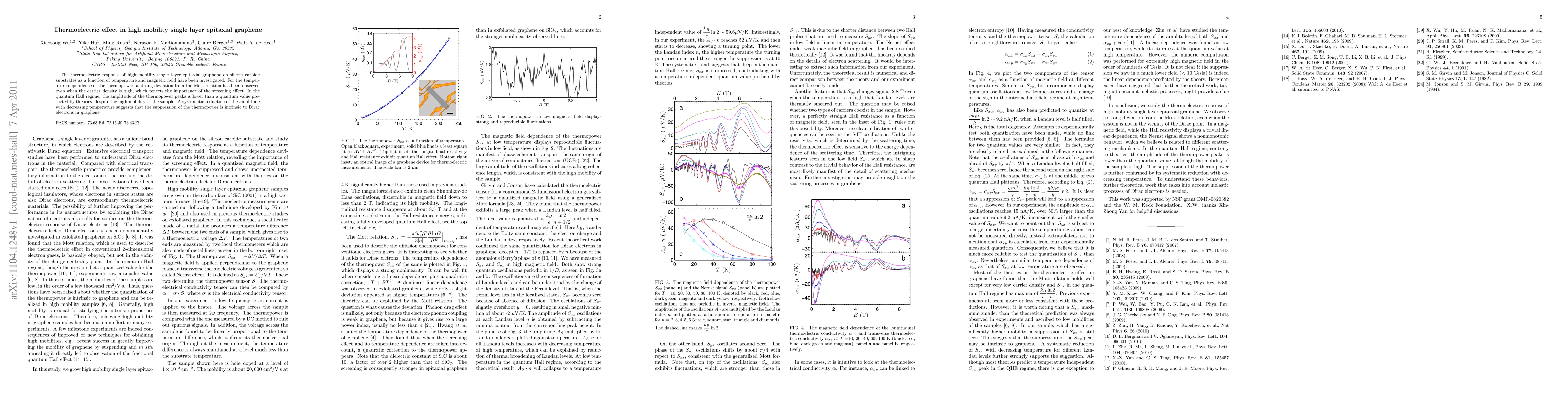 This paper investigates the thermoelectric response of high mobility single layer epitaxial graphene, revealing a strong deviation from the Mott relation due to screening effects and a reduced thermopower amplitude in the quantum Hall regime, suggesting intrinsic suppression of thermopower in Dirac electrons.