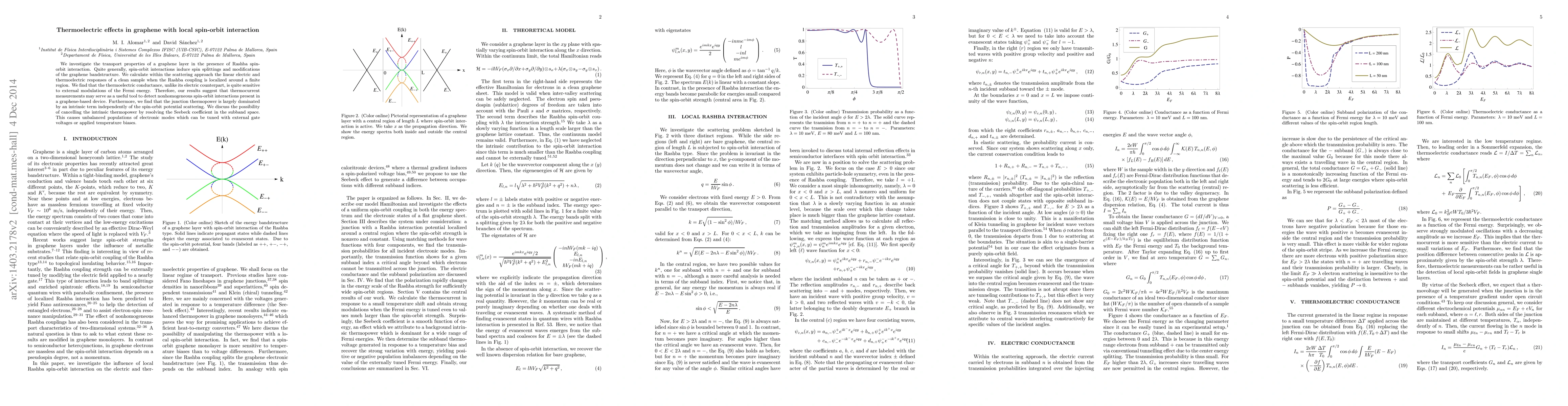 This paper investigates thermoelectric effects in graphene with localized Rashba spin-orbit interaction, finding that thermoelectric conductance is sensitive to Fermi energy modulations. The study suggests that thermocurrent measurements can detect nonhomogeneous spin-orbit interactions, and proposes cancelling intrinsic thermopower by tuning electronic modes with gate voltages or temperature biases.